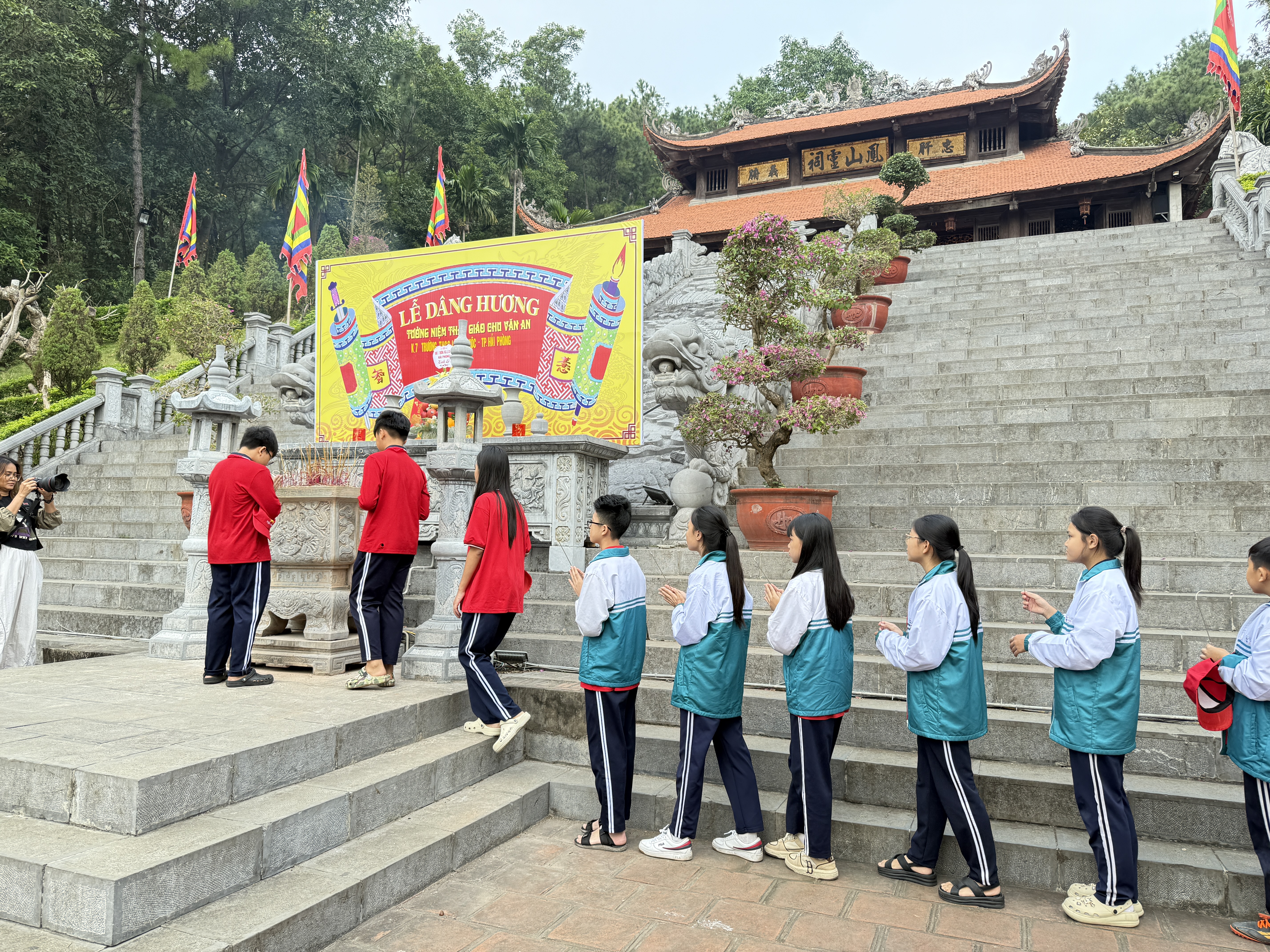 Nhằm tạo điều kiện cho học sinh khối 7 được học tập thông qua trải nghiệm thực tế, giúp các em mở rộng hiểu biết, bồi dưỡng truyền thống hiếu học và rèn luyện kỹ năng sống, nhà trường đã tổ chức chuyến tham quan – trải nghiệm tại ba địa điểm ý nghĩa: Đền thờ Chu Văn An, Khu tưởng niệm Nguyễn Trãi và Khu trải nghiệm Phù Đổng Green Park.