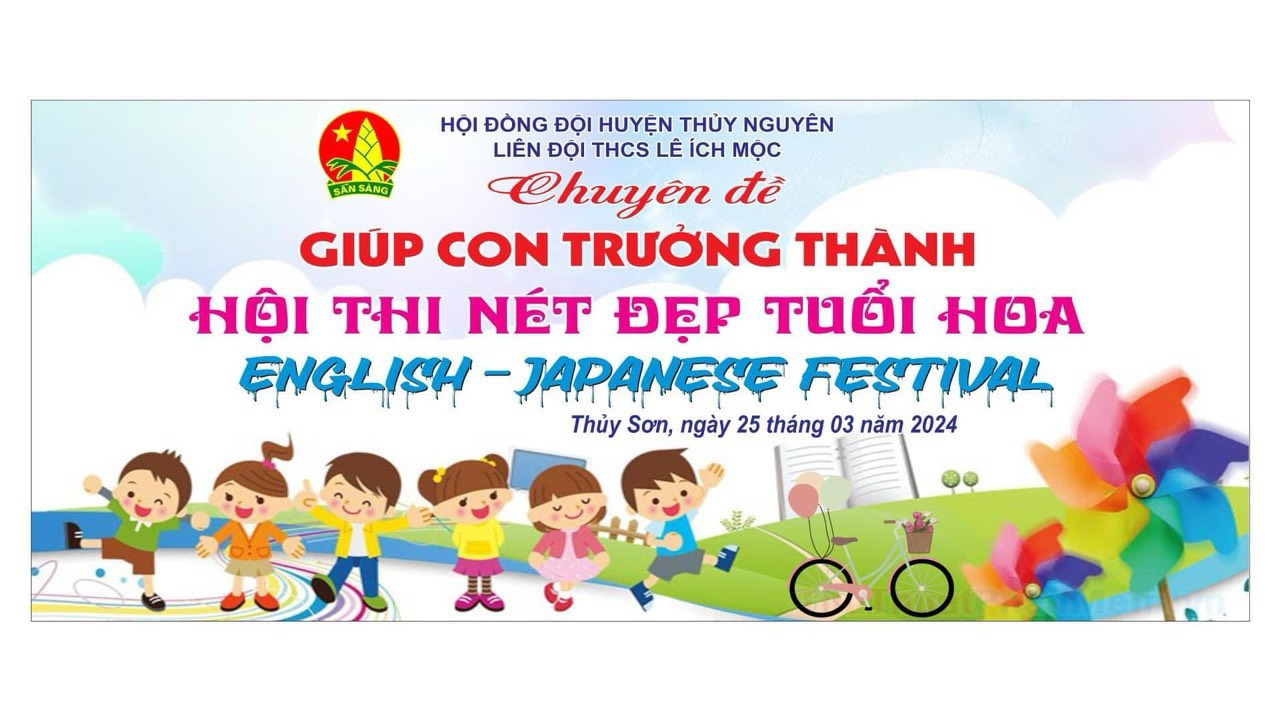 Thực hiện kế hoạch năm học 2023 - 2024, Chào mừng kỷ niệm 93 năm thành lập Đoàn Thanh niên Cộng sản Hồ Chí Minh (26/3/1931- 26/3/2024), sáng ngày 25 tháng 3 năm 2024 Liên đội THCS Lê Ích Mộc tổ chức Chuyên đề "Giúp con trưởng thành" Hội thi nét đẹp tuổi hoa và English - Japanese Festival.