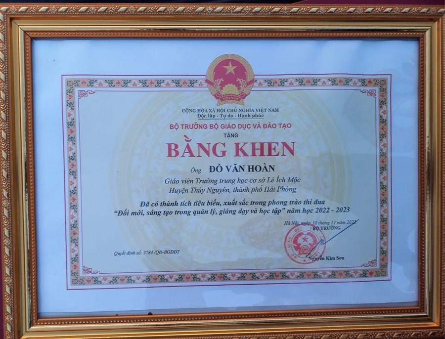 Tại Hội nghị, thật vinh dự và tự hào trường THCS Lê Ích Mộc có Thầy giáo Đỗ Văn Hoàn và Cô giáo Nguyễn Thị Lương được nhận Bằng khen của Bộ trưởng Bộ Giáo dục và Đào tạo!
