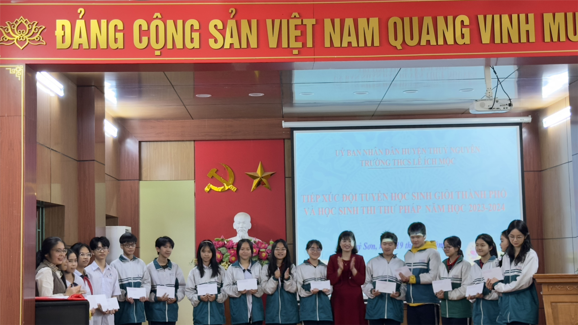 Chiều ngày 19 tháng 3 năm 2024, Trường THCS Lê Ích Mộc tổ chức tiếp xúc đội tuyển học sinh giỏi, dự thi HSG cấp thành phố và học sinh tham dự chung kết Hội thi viết thư pháp lần thứ 2 bằng chữ Quốc ngữ do huyện Thủy Nguyên tổ chức.