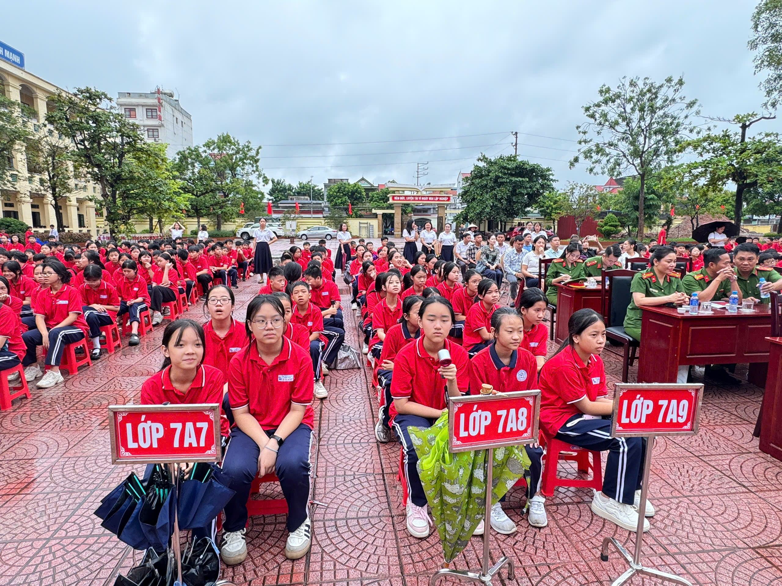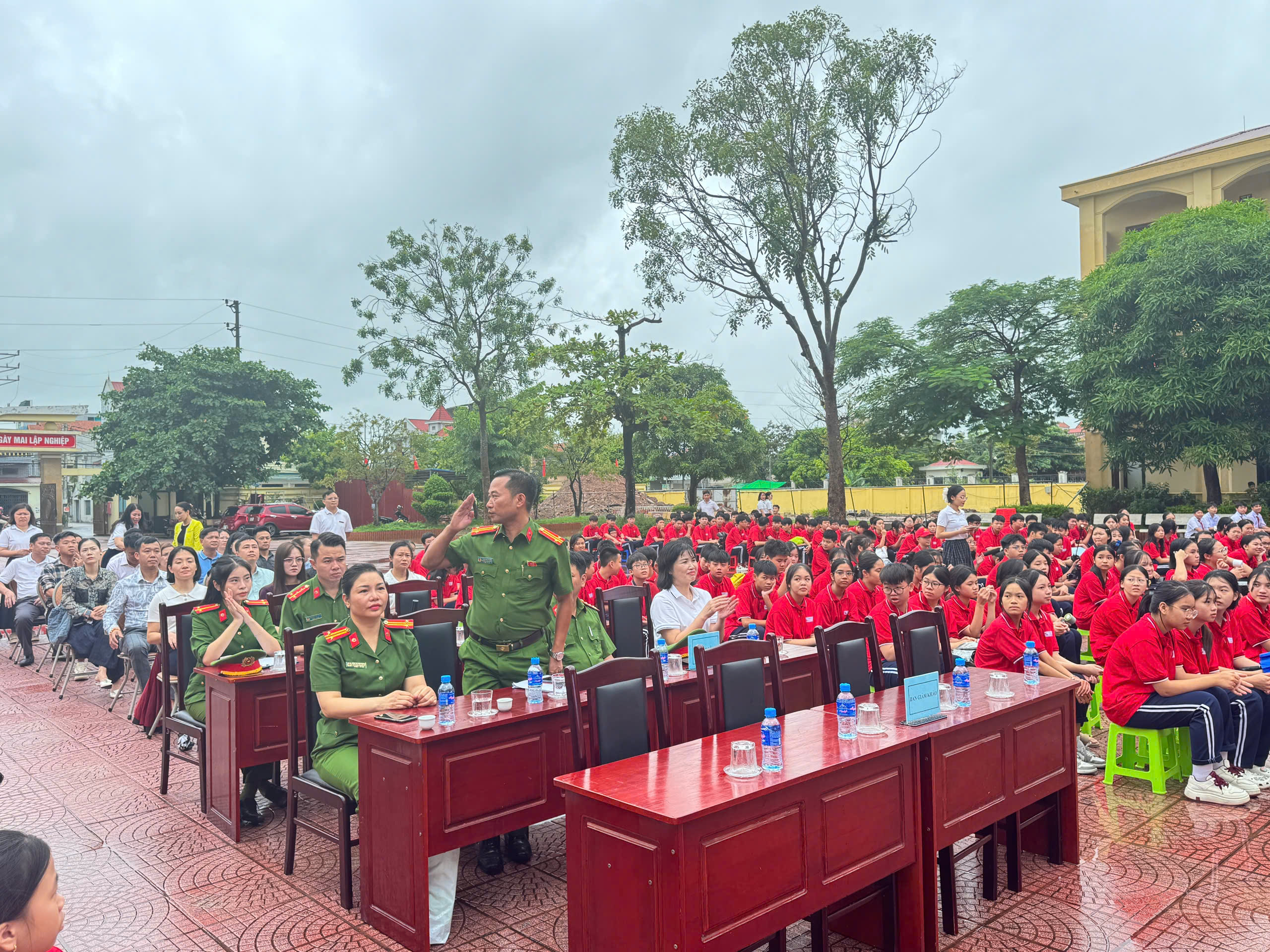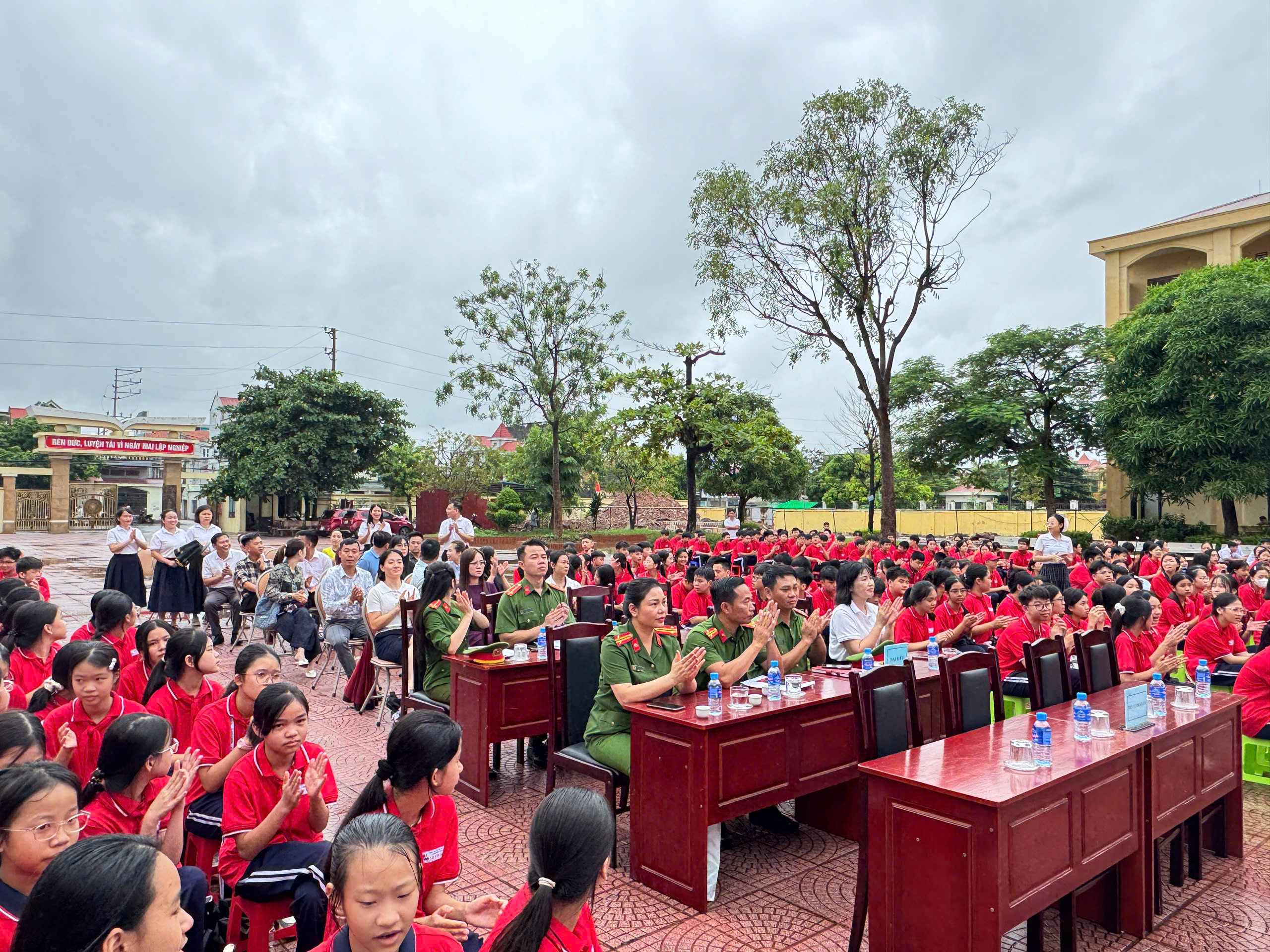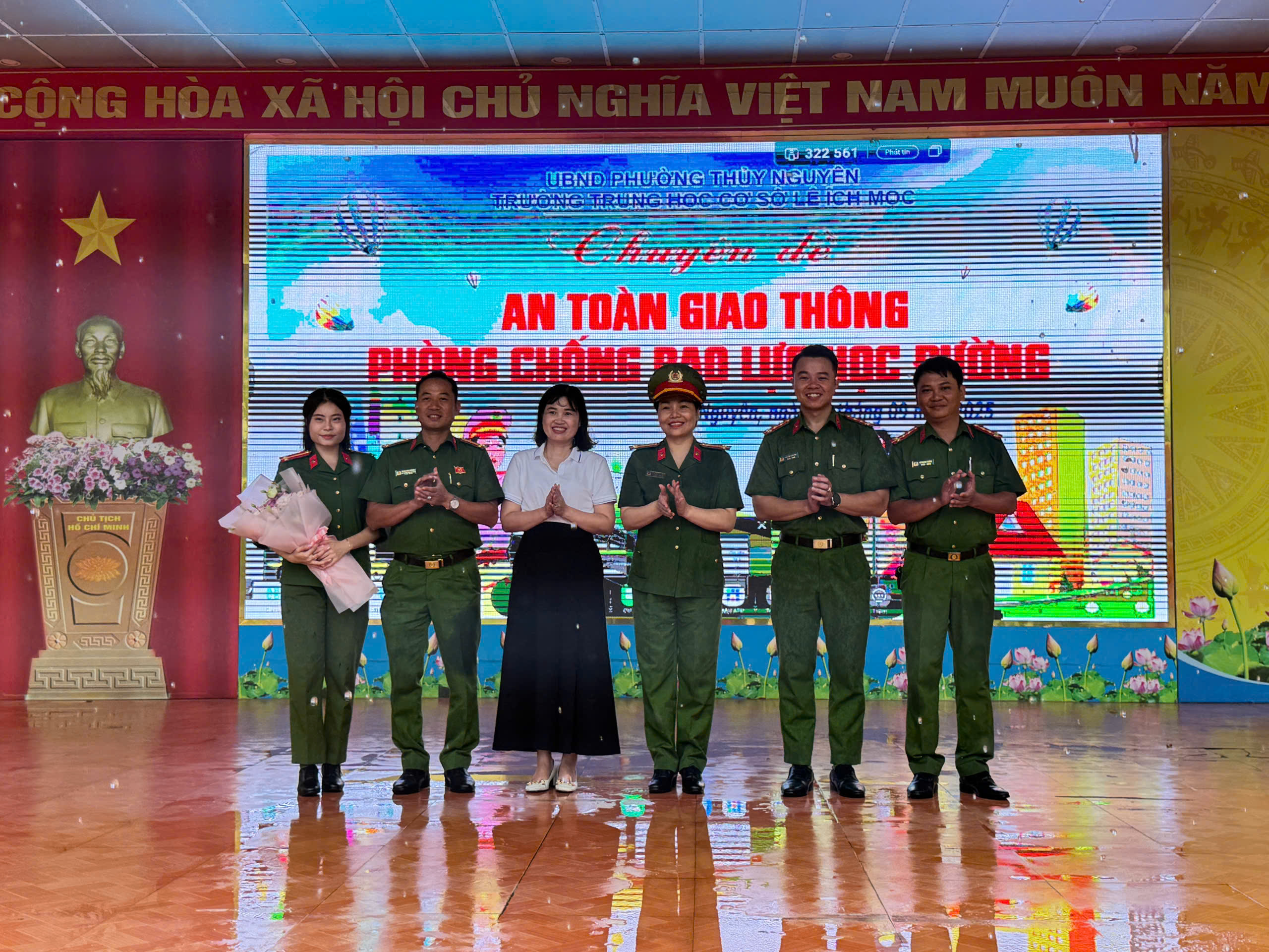 Dự và chỉ đạo chuyên đề có đồng chí Phó Trưởng Công an phường Thủy Nguyên và các đồng chí thuộc tổ tuyên truyền Công an phường Thủy Nguyên, Ban giám hiệu, các thầy cô giáo, Bạn đại diện phụ huynh nhà trường, đại diện phụ huynh các lớp và đông đảo học sinh toàn trường.