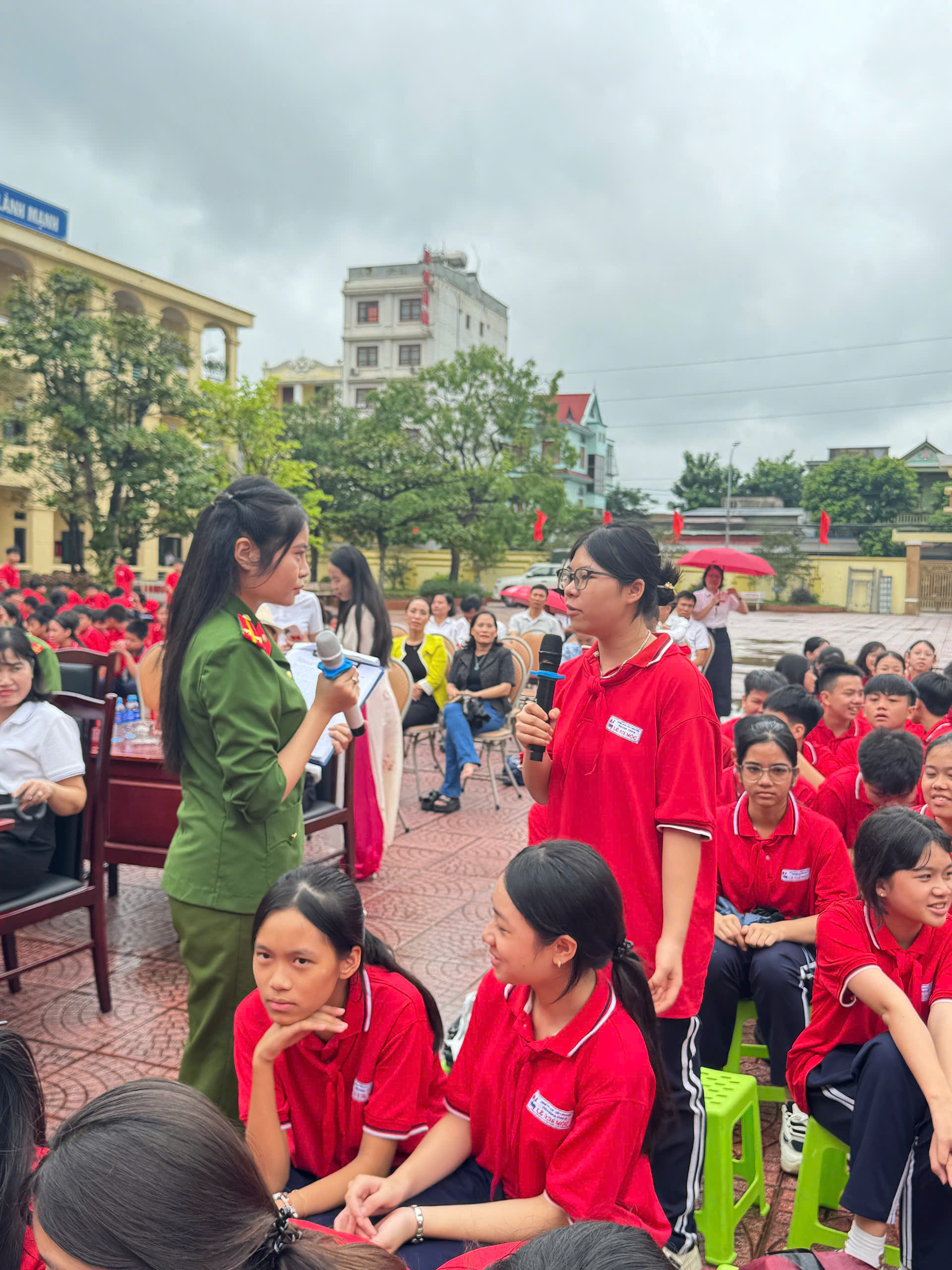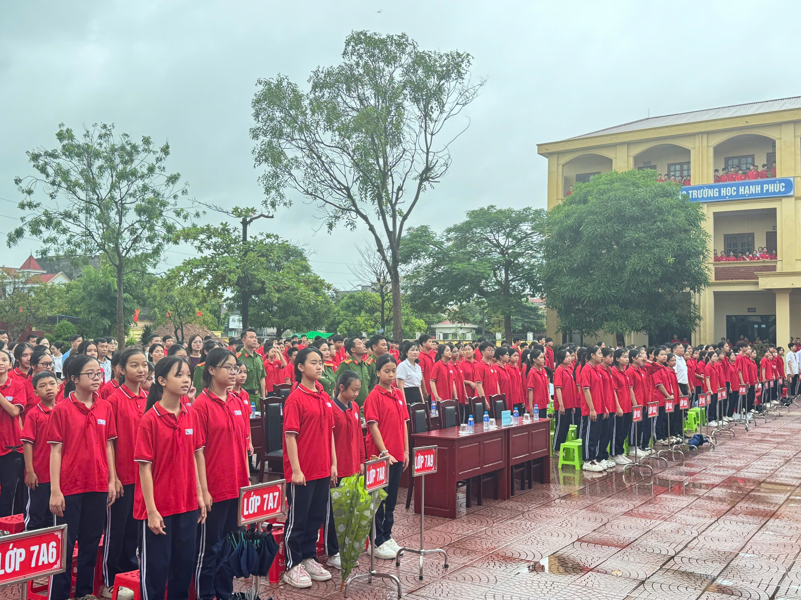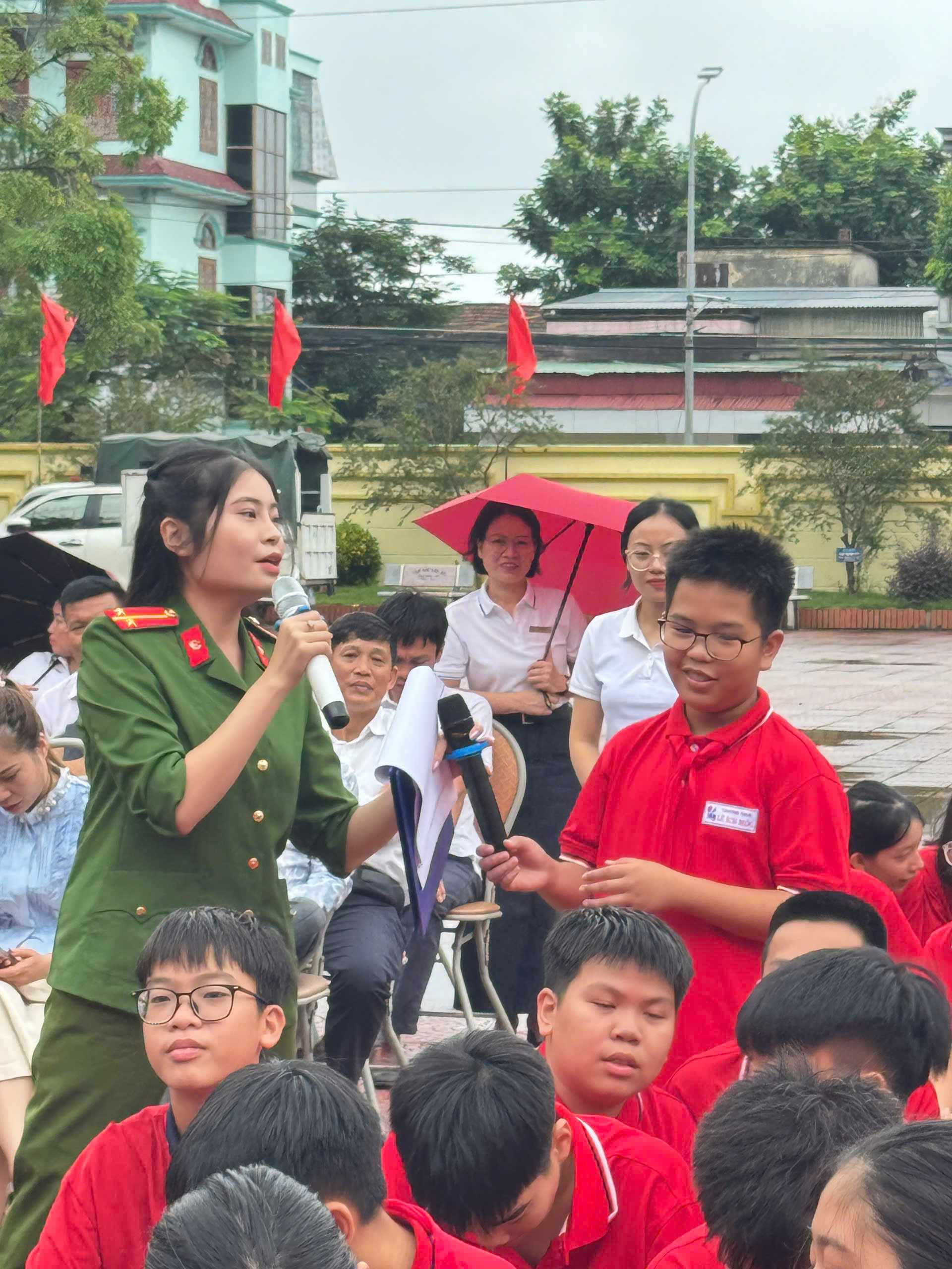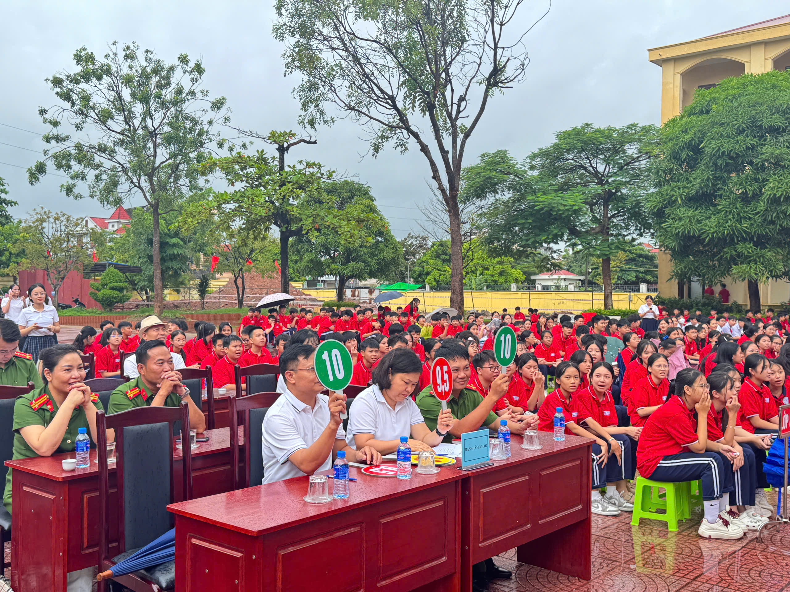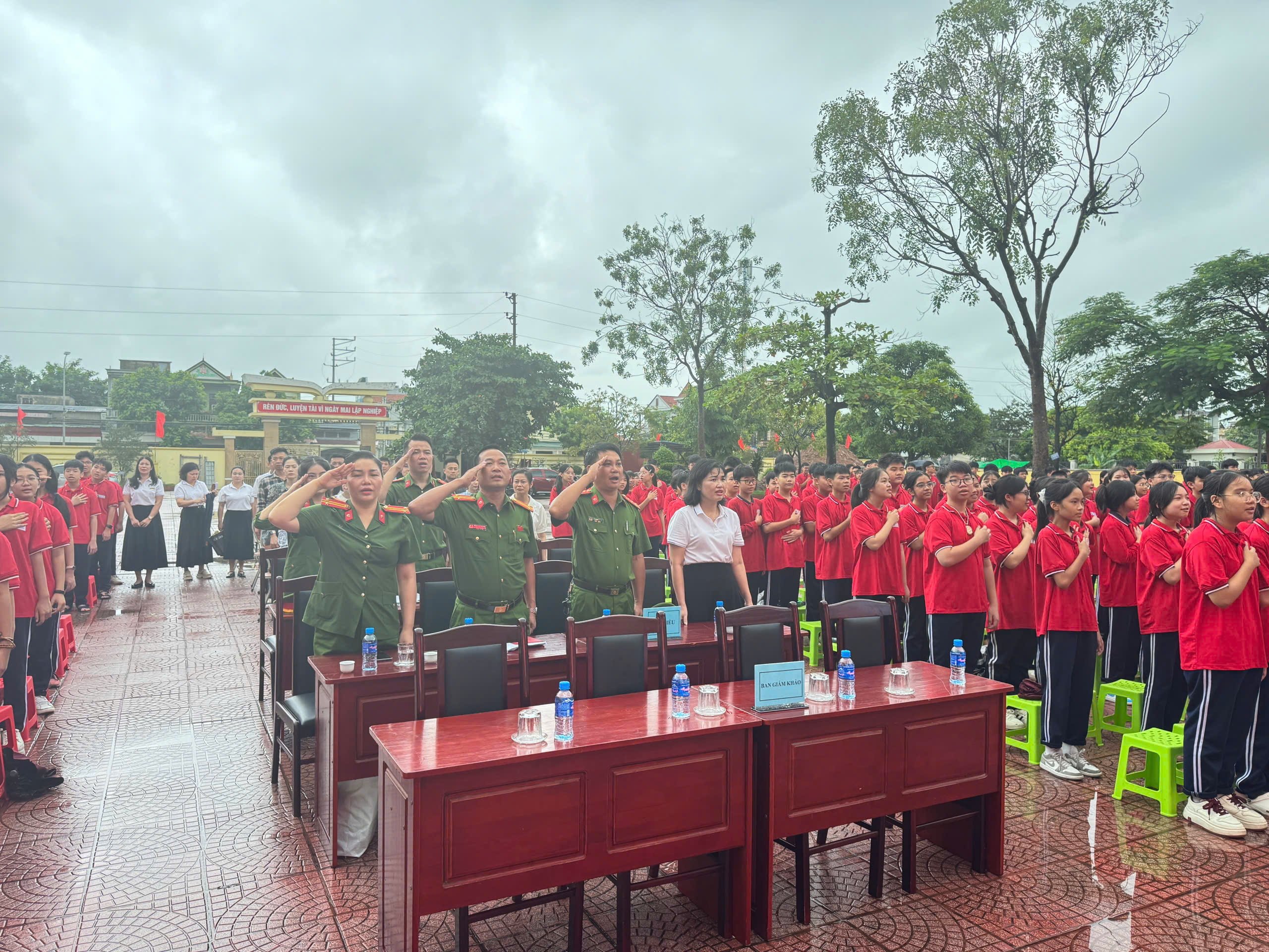 Dự và chỉ đạo chuyên đề có đồng chí Phó Trưởng Công an phường Thủy Nguyên và các đồng chí thuộc tổ tuyên truyền Công an phường Thủy Nguyên, Ban giám hiệu, các thầy cô giáo, Bạn đại diện phụ huynh nhà trường, đại diện phụ huynh các lớp và đông đảo học sinh toàn trường.