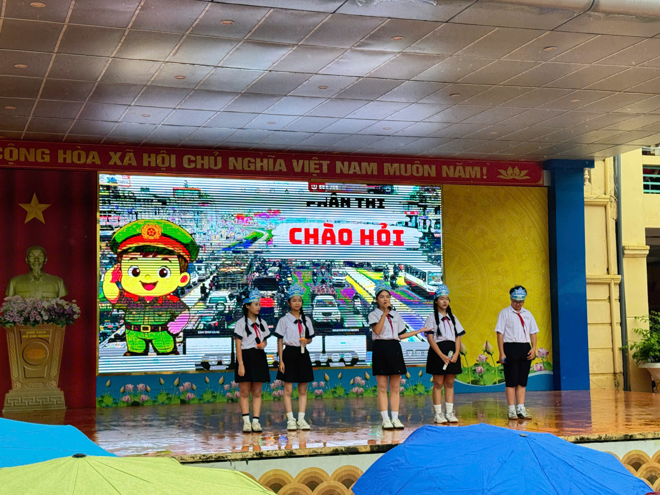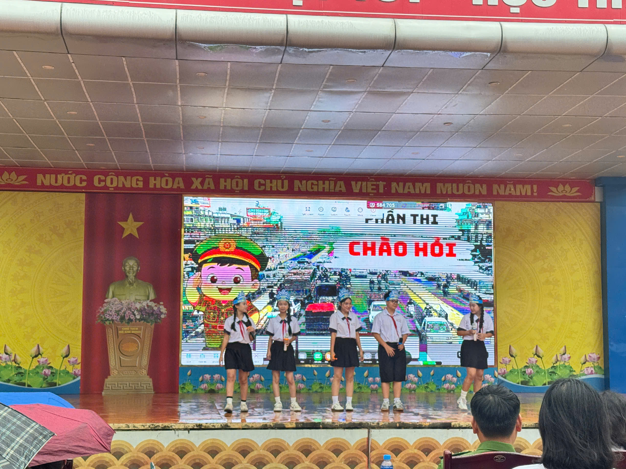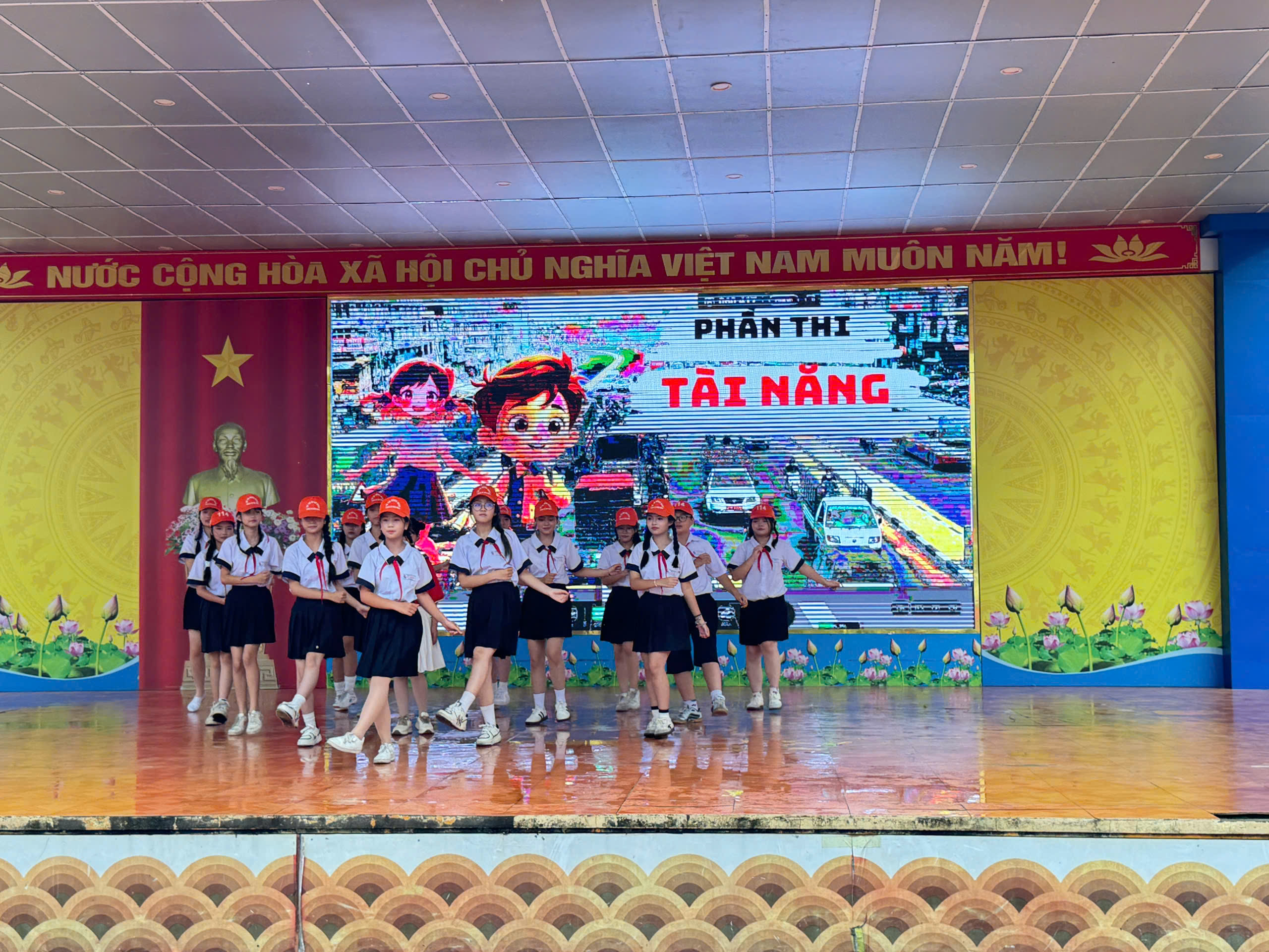 Hội thi gồm 3 phần: Chào hỏi – Hiểu biết – Tài năng, với sự tham gia nhiệt tình của các đội thi đến từ các lớp. Các phần thi đã mang đến bầu không khí hào hứng, vừa vui tươi vừa lồng ghép nhiều kiến thức thiết thực về luật giao thông, kỹ năng phòng tránh bạo lực học đường cũng như thông điệp xây dựng môi trường học tập an toàn, thân thiện.