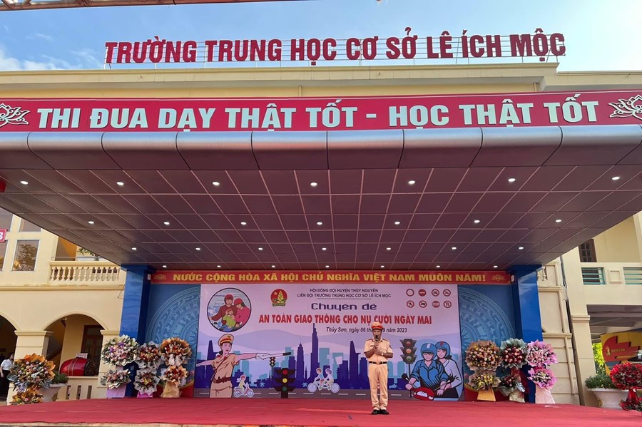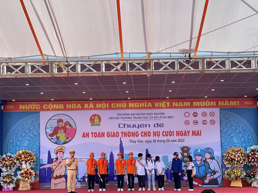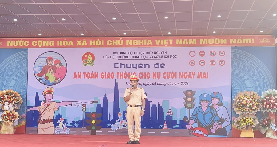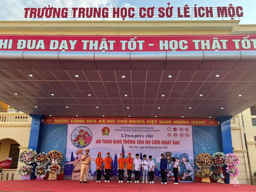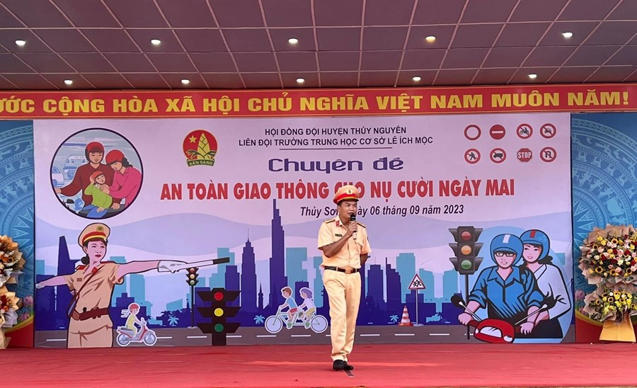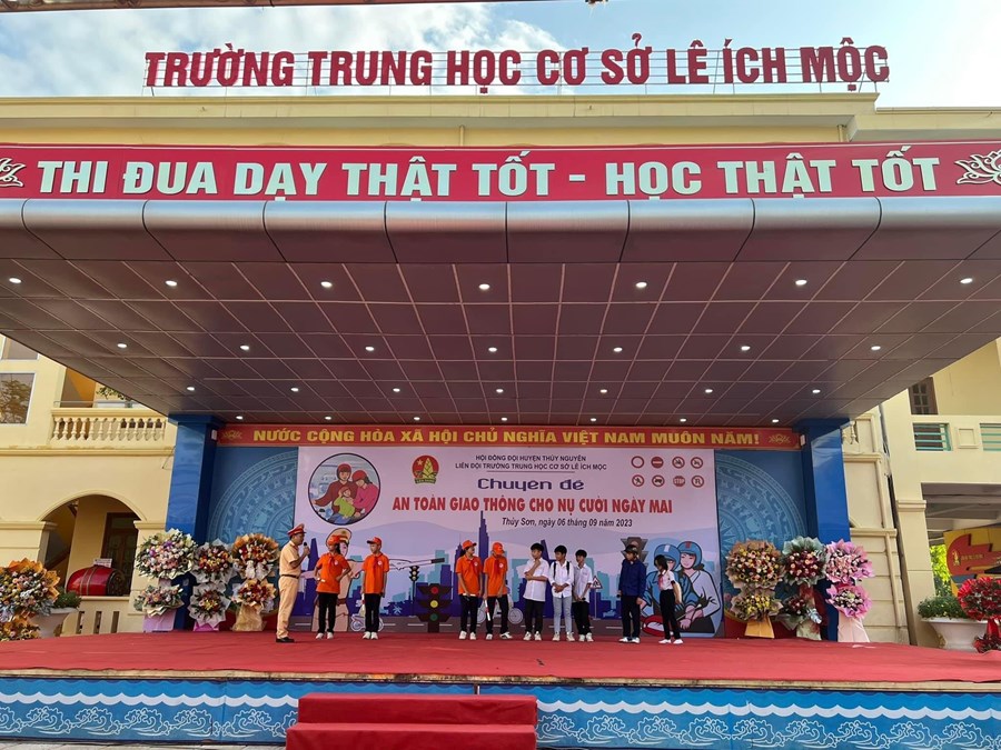 Sáng ngày 6/9/2023, trường THCS Lê Ích Mộc phối hợp cùng Công an Huyện Thuỷ Nguyên tổ chức Chuyên đề An toàn giao thông cho nụ cười ngày mai.