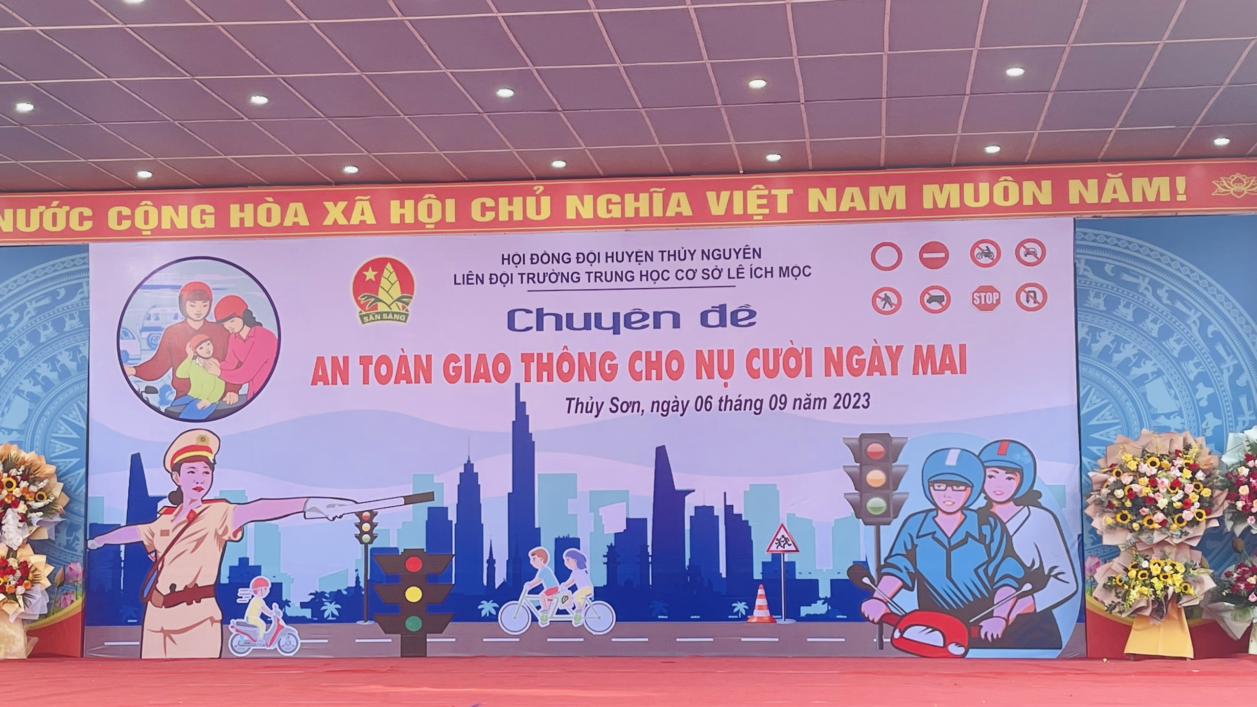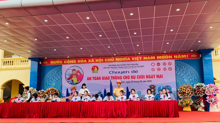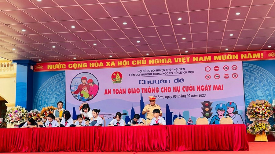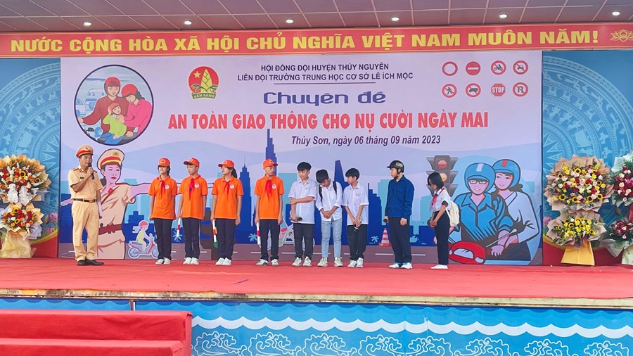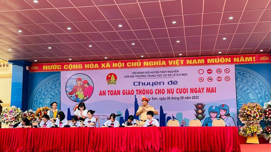 Sáng ngày 6/9/2023, trường THCS Lê Ích Mộc phối hợp cùng Công an Huyện Thuỷ Nguyên tổ chức Chuyên đề An toàn giao thông cho nụ cười ngày mai.