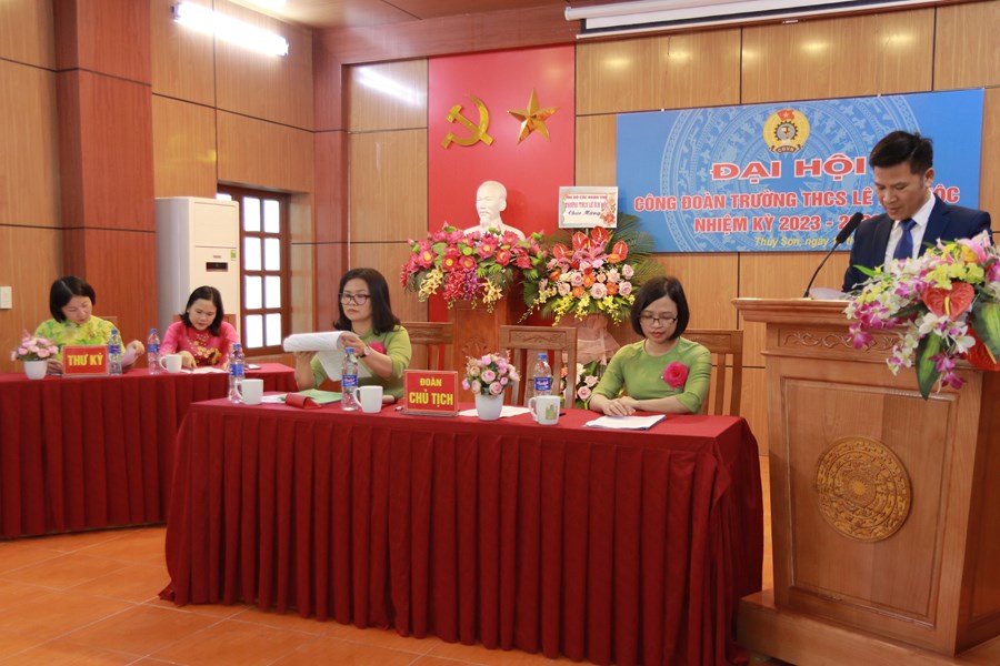 Sau nghĩ lễ chào cờ, Đại hội biểu quyết đoàn chủ tịch gồm 3 đồng chí: Phạm Thị Chung-CT Công đoàn, Cao Thị Mai Thương - UV BCH Công đoàn, Phạm Thành Tới - đoàn viên công đoàn tiêu biểu. Thư ký Đại hội 2 đồng chí: Đinh Thị Ngọc Hà - đoàn viên tổ KHXH, Đào Thị Thu Thuỷ - đoàn tổ KHTN.