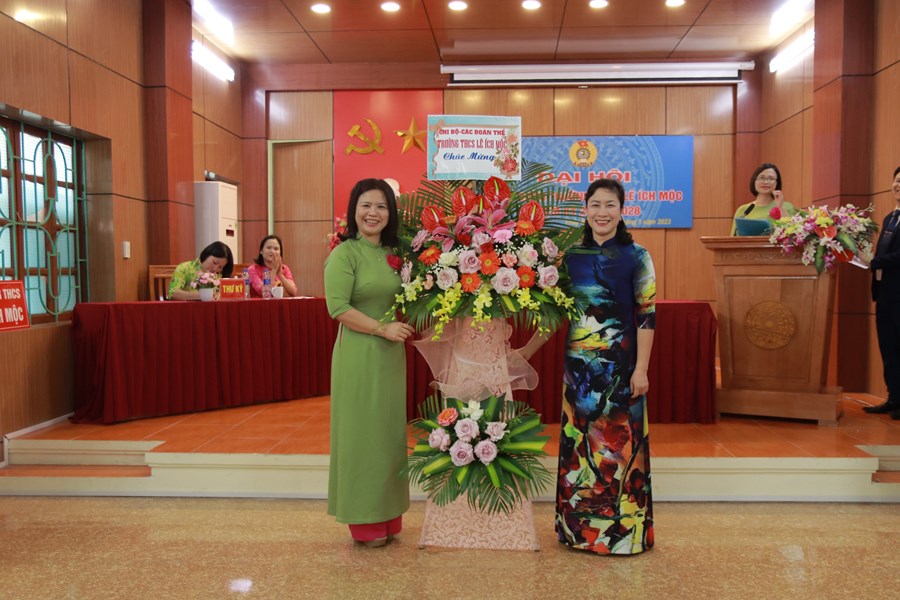 Về dự Đại hội có bà Nguyễn Thị Lương - PCT Liên đoàn lao động huyện Thuỷ Nguyên, bà Võ Thị Hiền - BT chi bộ, Hiệu trưởng trường THCS Lê Ích Mộc và 62 đoàn viên công đoàn.