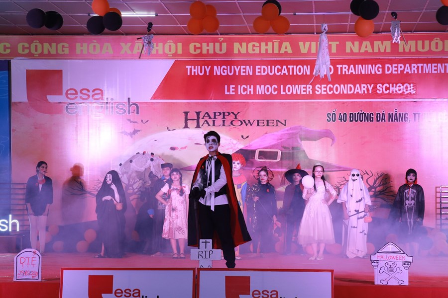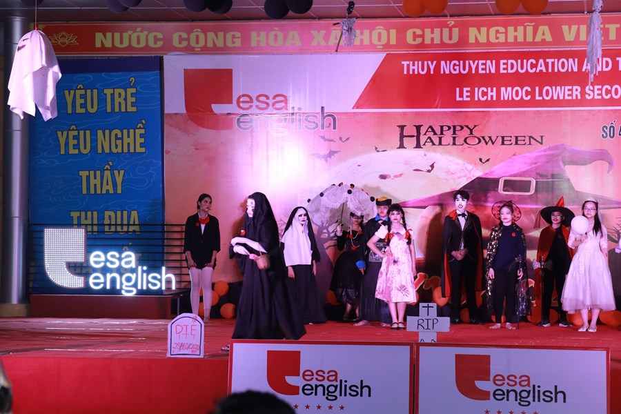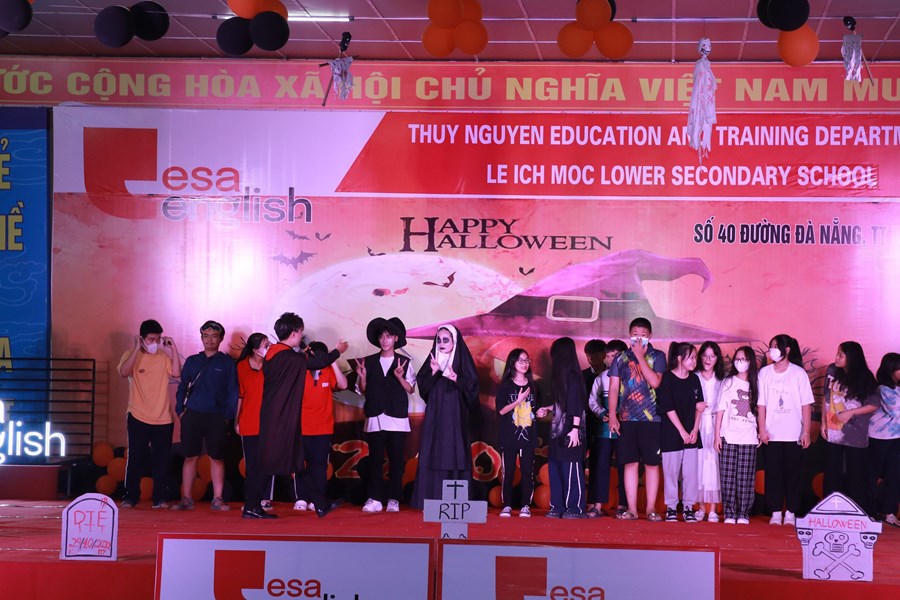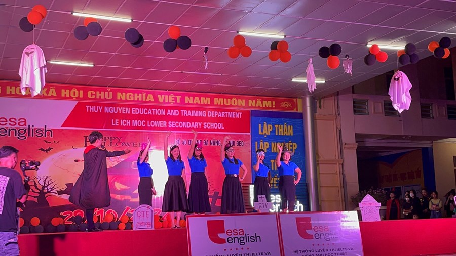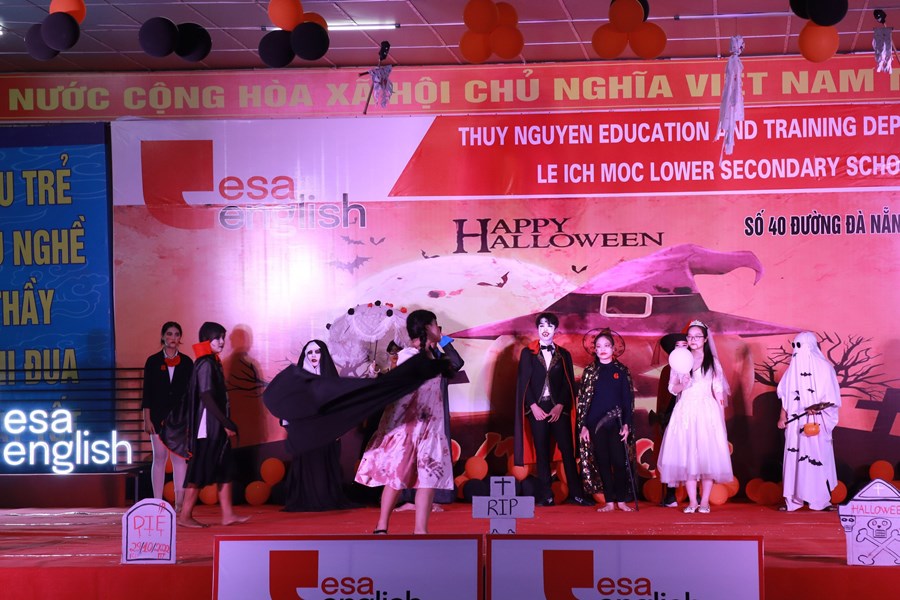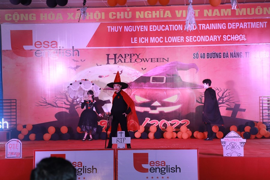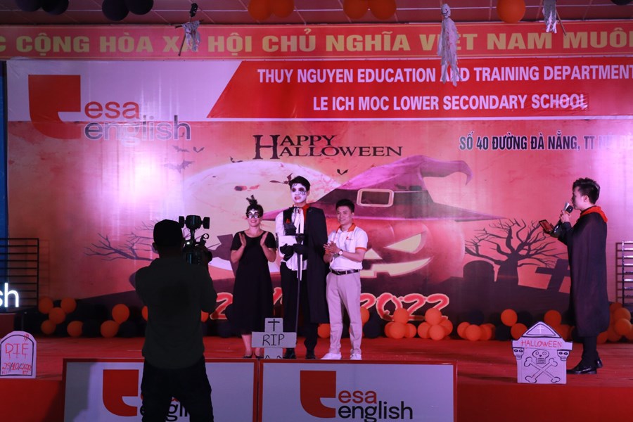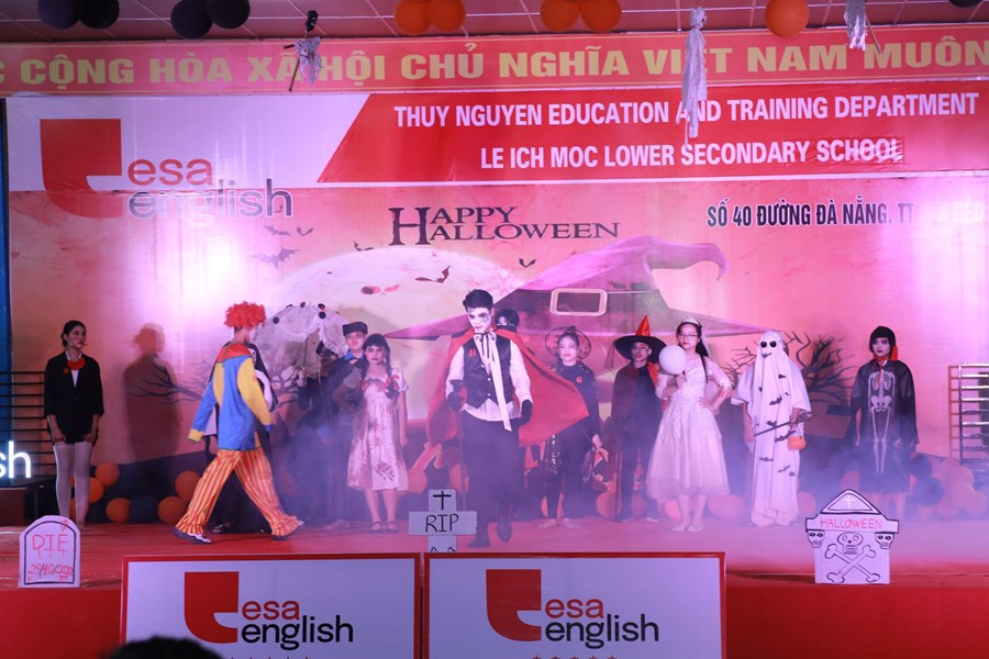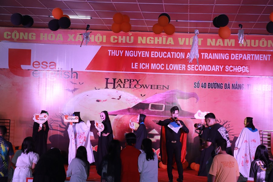 Tối ngày 29/10/2022 được sự đồng ý của BGH, nhà trường cùng với trung tâm anh ngữ Esa English đã tổ chức lễ hội Halloween với những hoạt động thú vị cùng những màn trình diễn thời trang hóa trang thành nhân vật halloween yêu thích và những tiết mục văn nghệ vô cùng hấp dẫn. Những màn vũ đạo sôi động, những ca khúc mang đặc trưng mùa halloween, những tiết mục trình diễn thời trang vui nhộn hay các trò chơi đặc trưng của ngày lễ halloween cùng phần quà hấp dẫn đã mang đến cho các em học sinh và các thầy cô giáo một đêm hội vui chơi bổ ích, ấn tượng và tràn ngập tiếng cười. Thông qua trò chơi các bạn nhỏ được rèn luyện kĩ năng làm việc nhóm, rèn luyện tinh thần đoàn kết đồng đội để vượt qua những thử thách khó khăn mà chương trình đưa ra. Đây là sân chơi bổ ích với ý nghĩa đem đến cho các em niềm đam mê học tập và sự vui thích sau những giờ học tập.