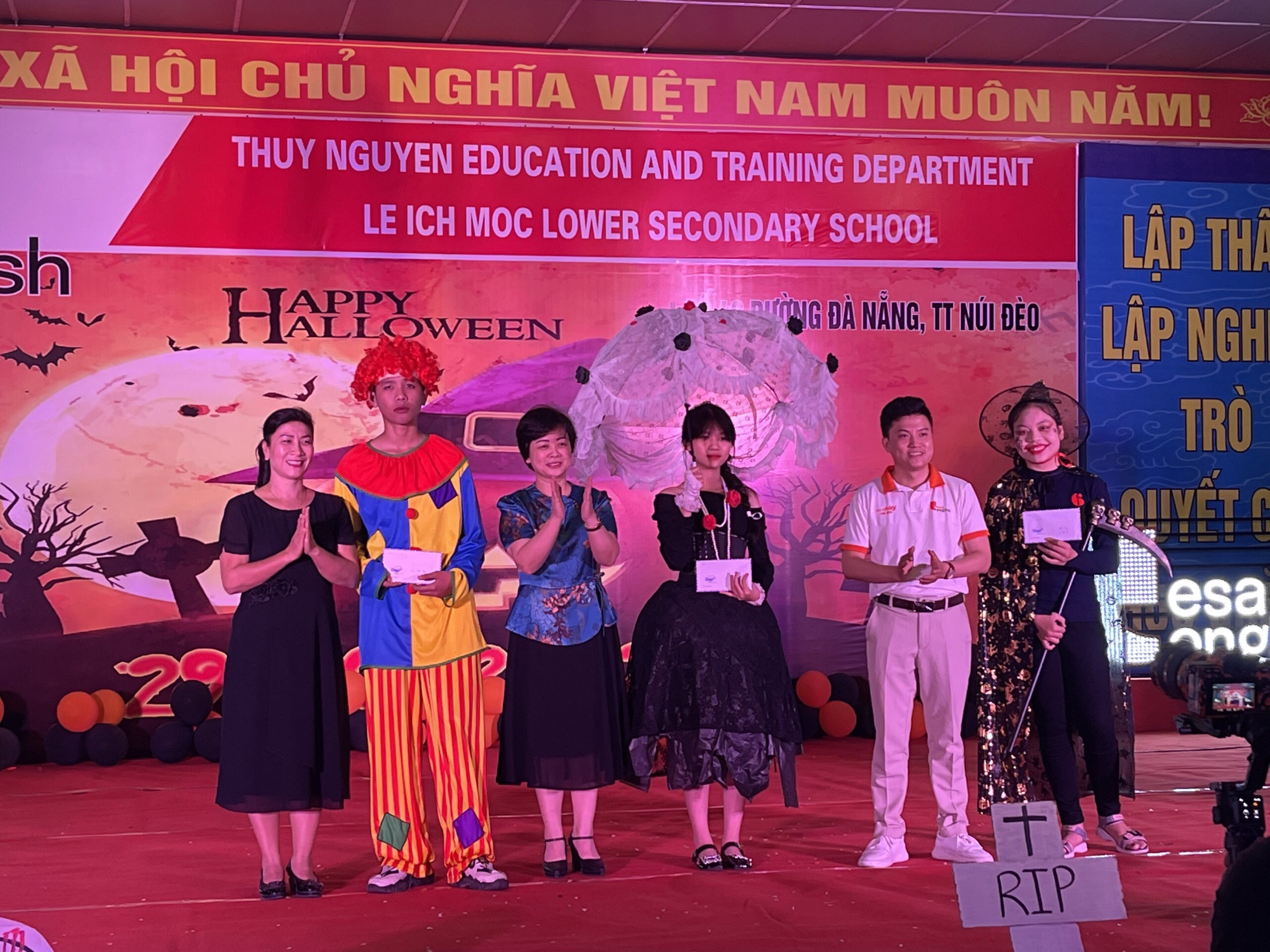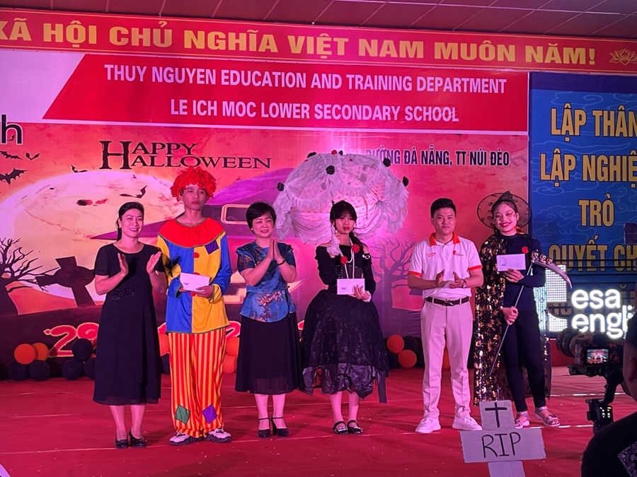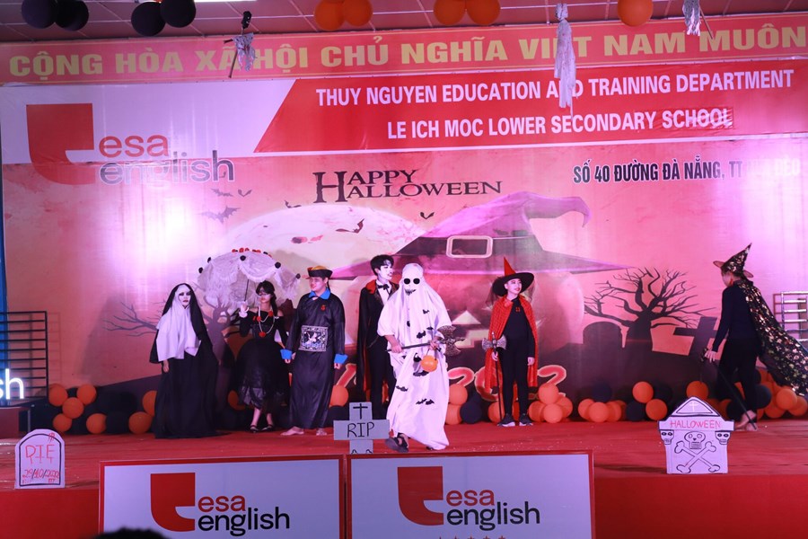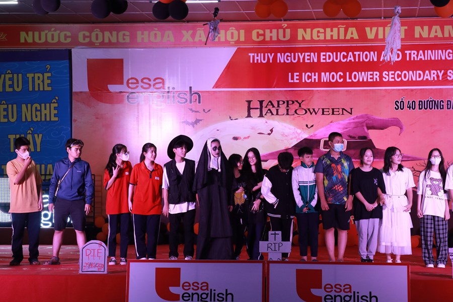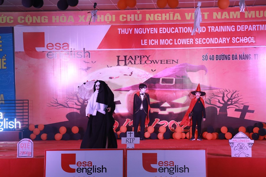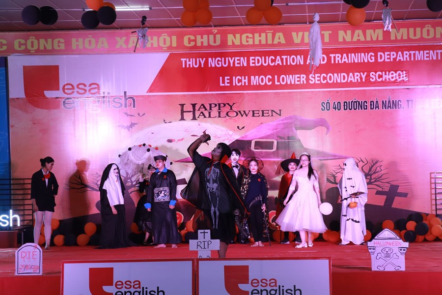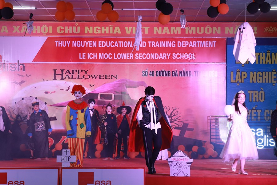 Tối ngày 29/10/2022 được sự đồng ý của BGH, nhà trường cùng với trung tâm anh ngữ Esa English đã tổ chức lễ hội Halloween với những hoạt động thú vị cùng những màn trình diễn thời trang hóa trang thành nhân vật halloween yêu thích và những tiết mục văn nghệ vô cùng hấp dẫn. Những màn vũ đạo sôi động, những ca khúc mang đặc trưng mùa halloween, những tiết mục trình diễn thời trang vui nhộn hay các trò chơi đặc trưng của ngày lễ halloween cùng phần quà hấp dẫn đã mang đến cho các em học sinh và các thầy cô giáo một đêm hội vui chơi bổ ích, ấn tượng và tràn ngập tiếng cười. Thông qua trò chơi các bạn nhỏ được rèn luyện kĩ năng làm việc nhóm, rèn luyện tinh thần đoàn kết đồng đội để vượt qua những thử thách khó khăn mà chương trình đưa ra. Đây là sân chơi bổ ích với ý nghĩa đem đến cho các em niềm đam mê học tập và sự vui thích sau những giờ học tập.