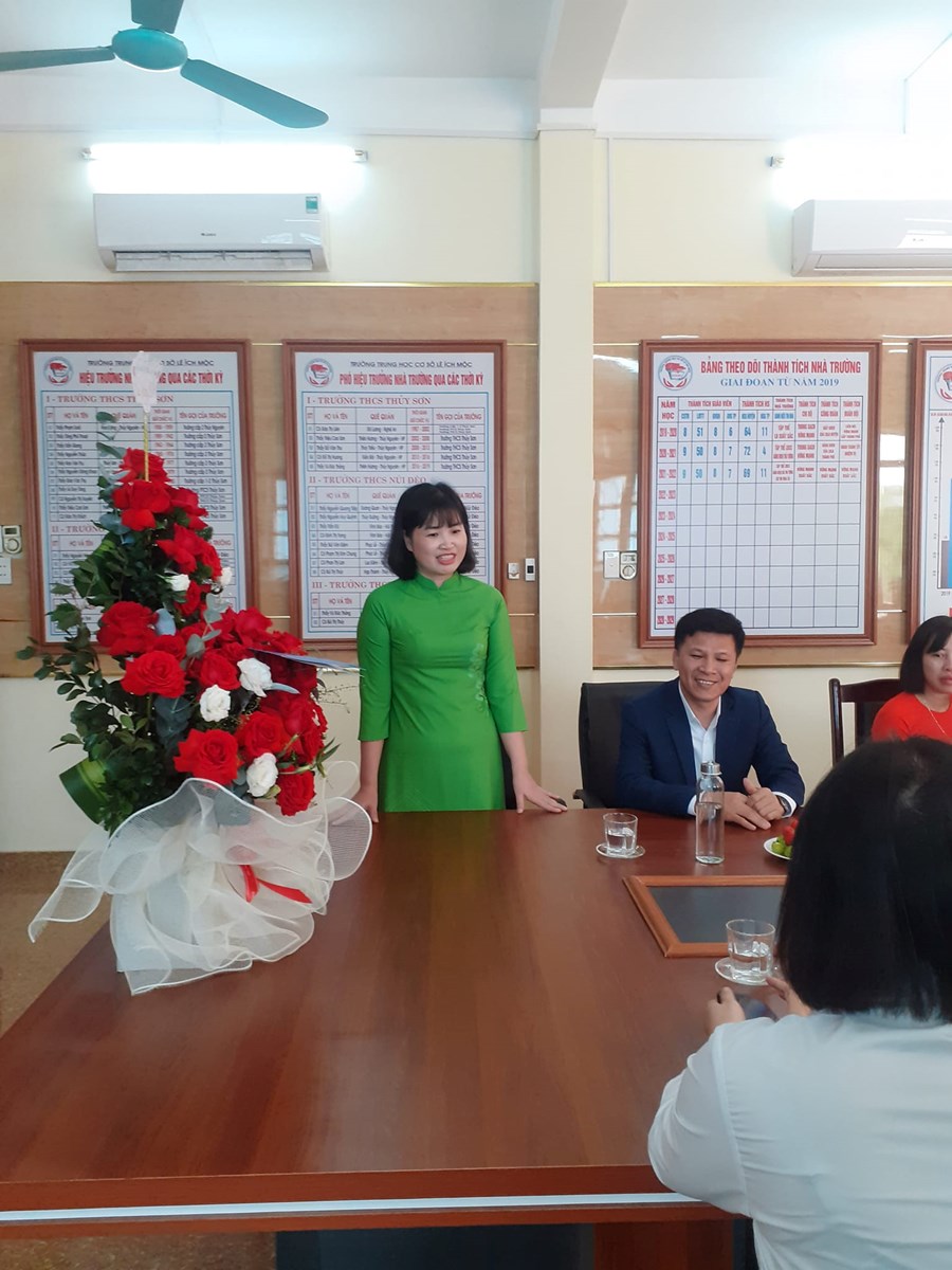 Thay mặt nhà trường, nhà giáo Phạm Thị Kim Chung Bí thư Chi bộ, Hiệu trưởng đã phát biểu cảm ơn và nêu quyết tâm Cán bộ, giáo viên nhân viên nhà trường sẽ vượt khó vươn lên xây dựng trường THCS Lê Ích Mộc thành trường trọng điểm của huyện.
