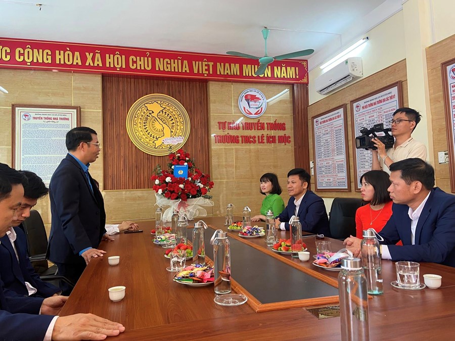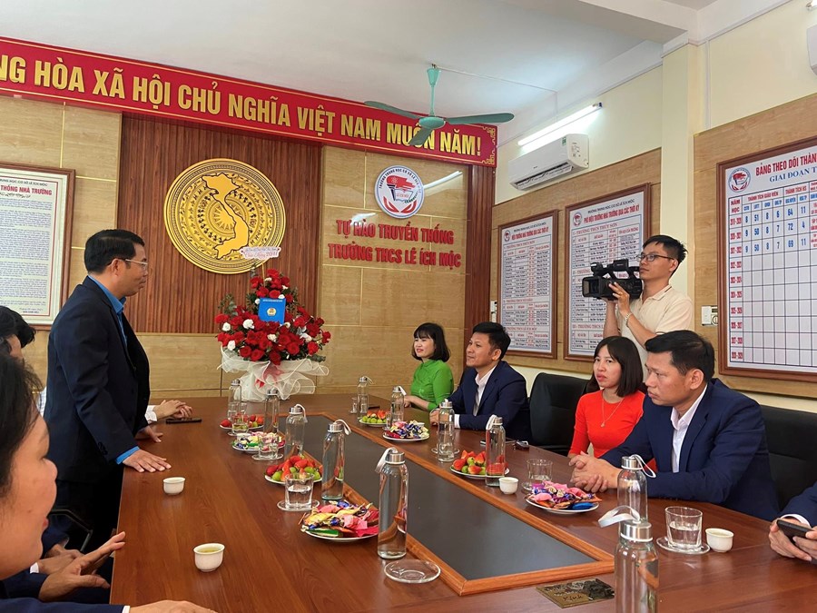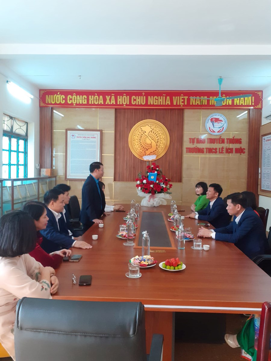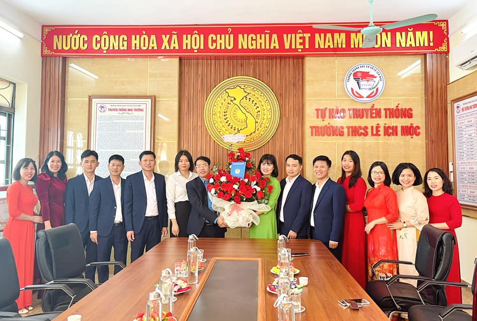 Nhân dịp Kỷ niệm 41 năm ngày Nhà Việt Nam (20/11/1982-20/11/2023). Chiều ngày 15/11/2023, Đ/c Bùi Văn Biên Ủy viên Ban thường vụ Liên đoàn Lao động thành phố, Huyện ủy viên, Chủ tịch Liên đoàn Lao động huyện Thủy Nguyên tới thăm và tặng hoa chúc mừng tập thể Cán bộ - Giáo viên - Nhân viên trường THCS Lê Ích Mộc.