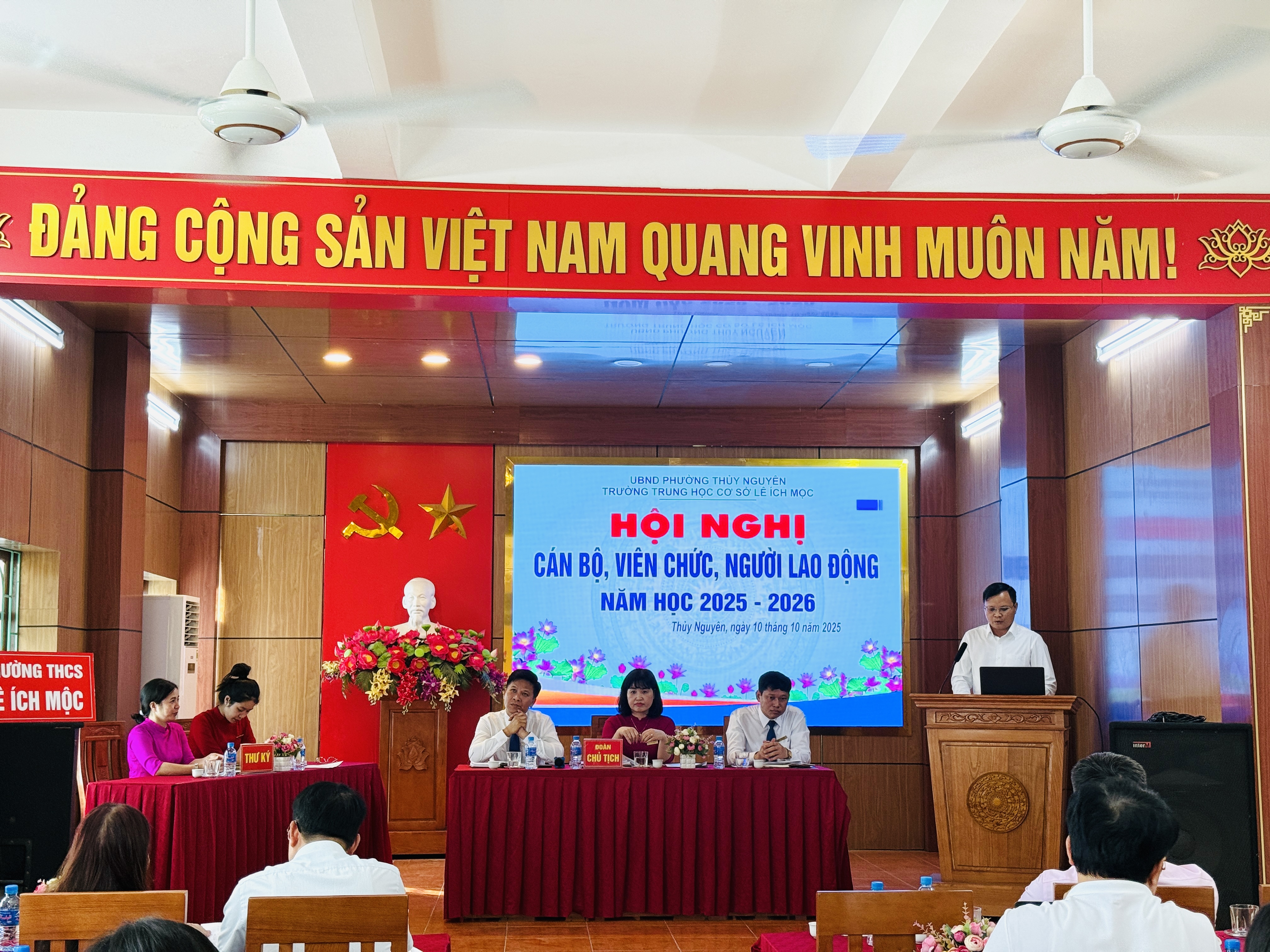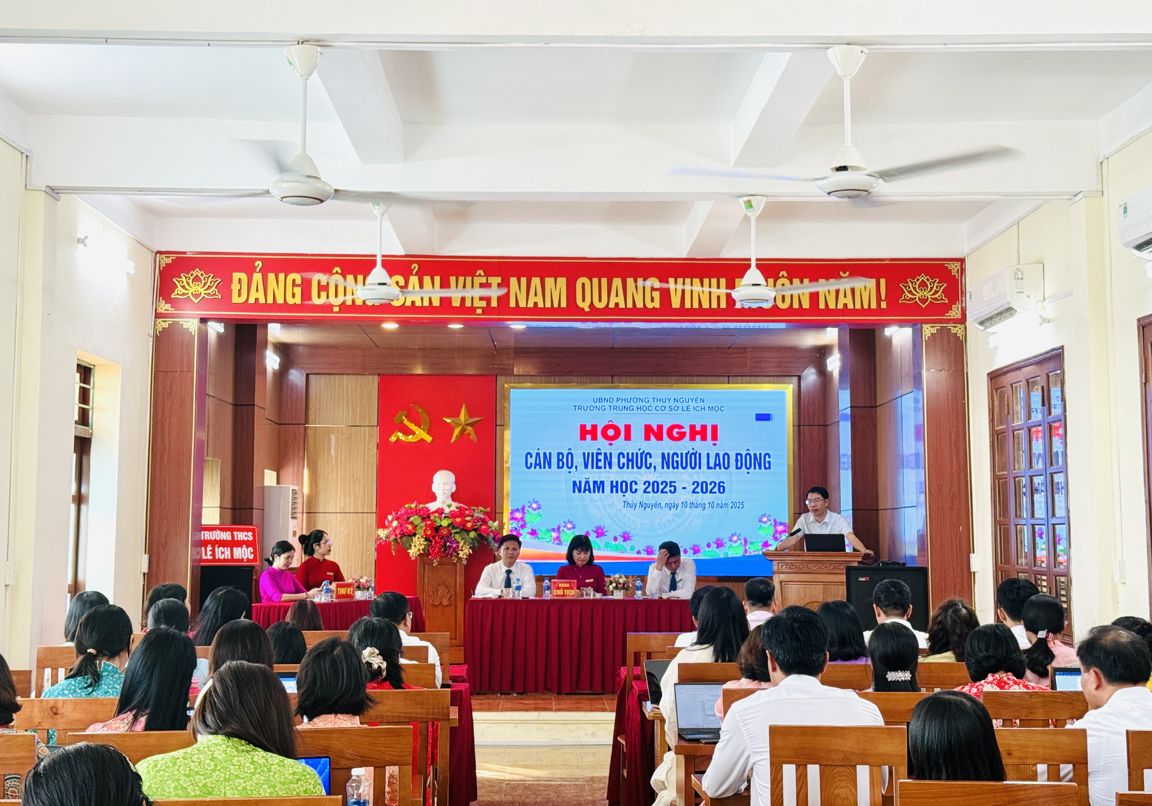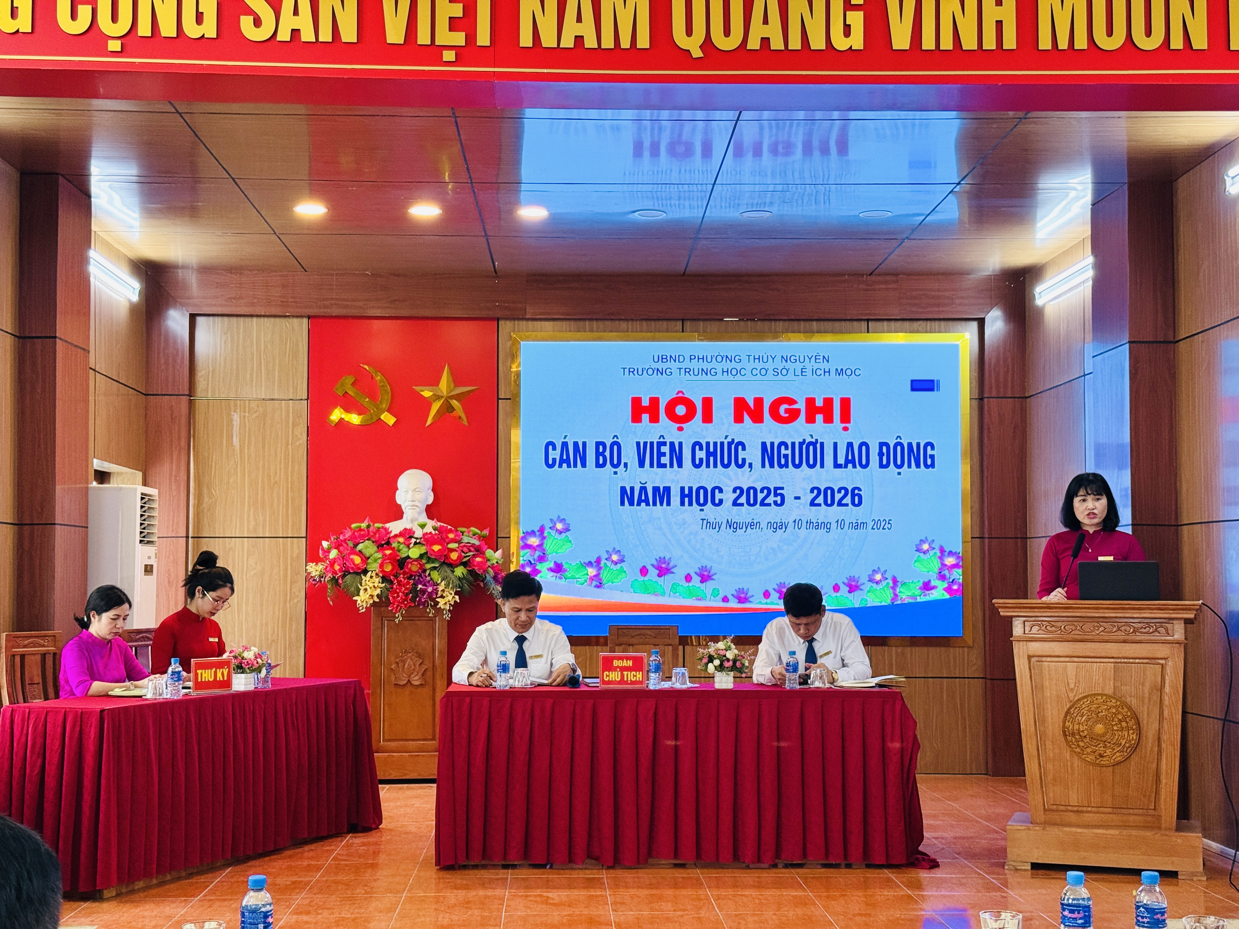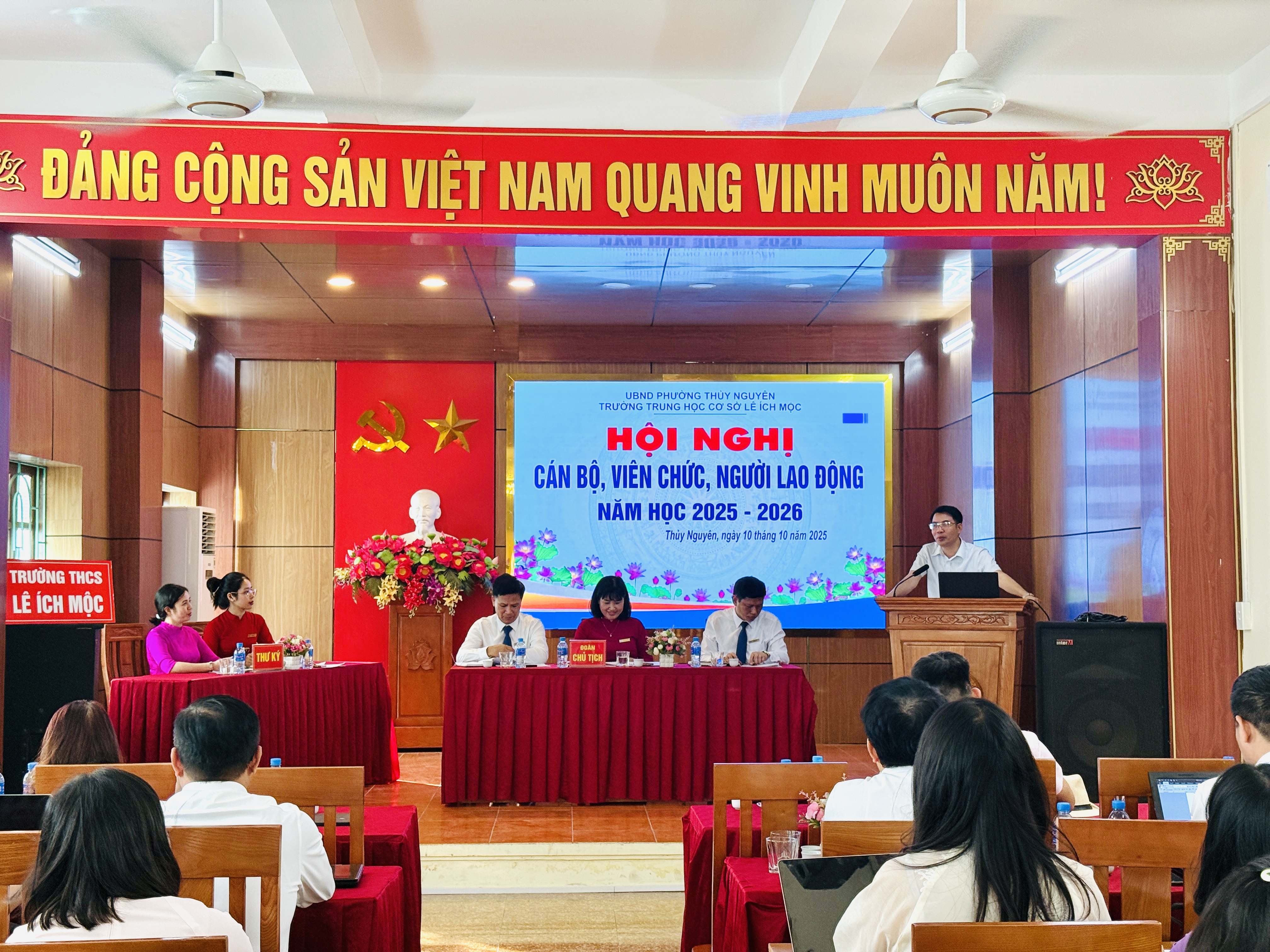 Ngày 10 tháng 10 năm 2025, Trường THCS Lê Ích Mộc long trọng tổ chức Hội nghị cán bộ, viên chức, người lao động năm học 2025–2026. Đây là hoạt động thường niên có ý nghĩa quan trọng, nhằm đánh giá kết quả thực hiện nhiệm vụ năm học 2024–2025, đồng thời thảo luận, đề ra phương hướng, mục tiêu và giải pháp thực hiện nhiệm vụ năm học mới.