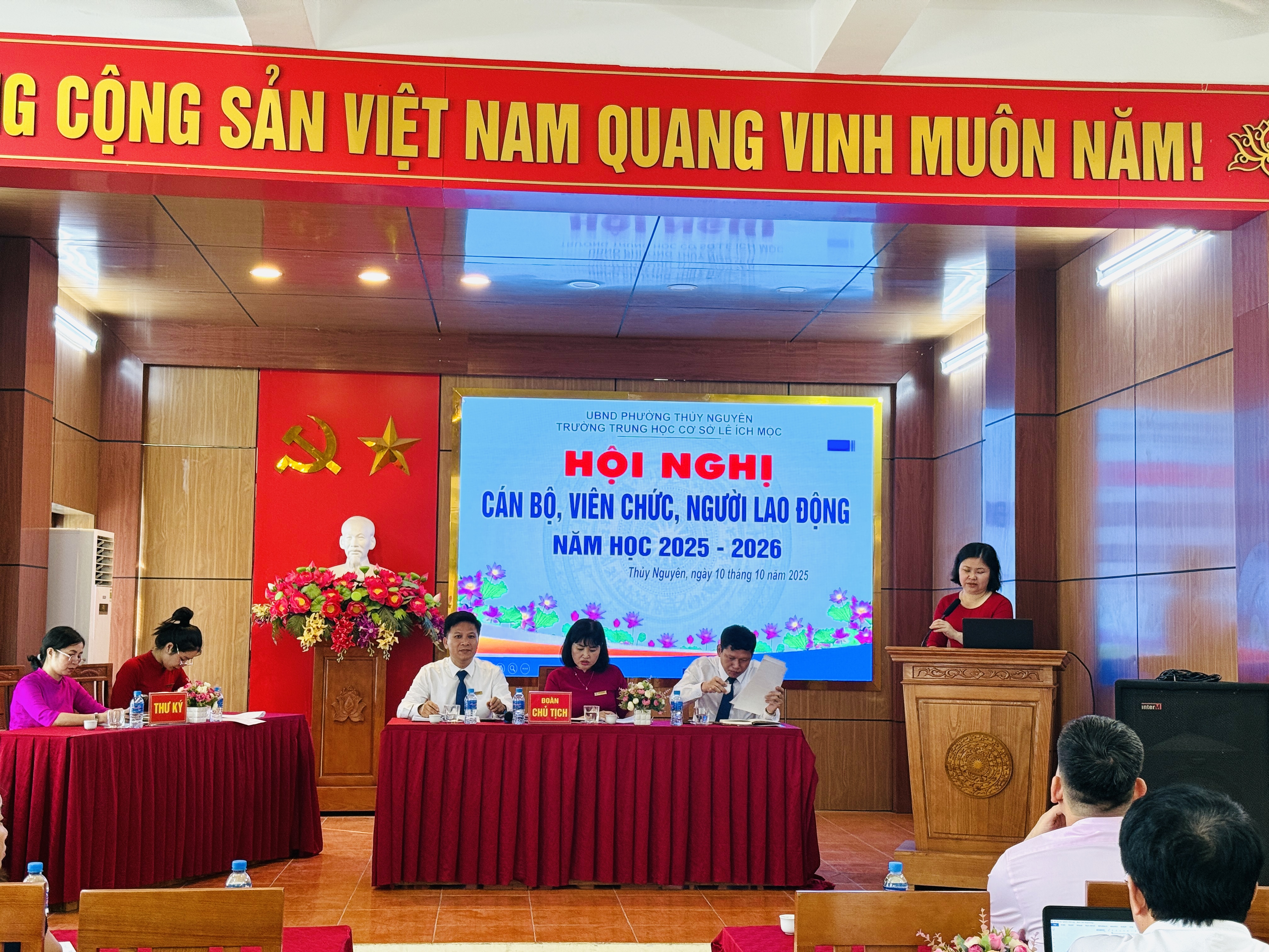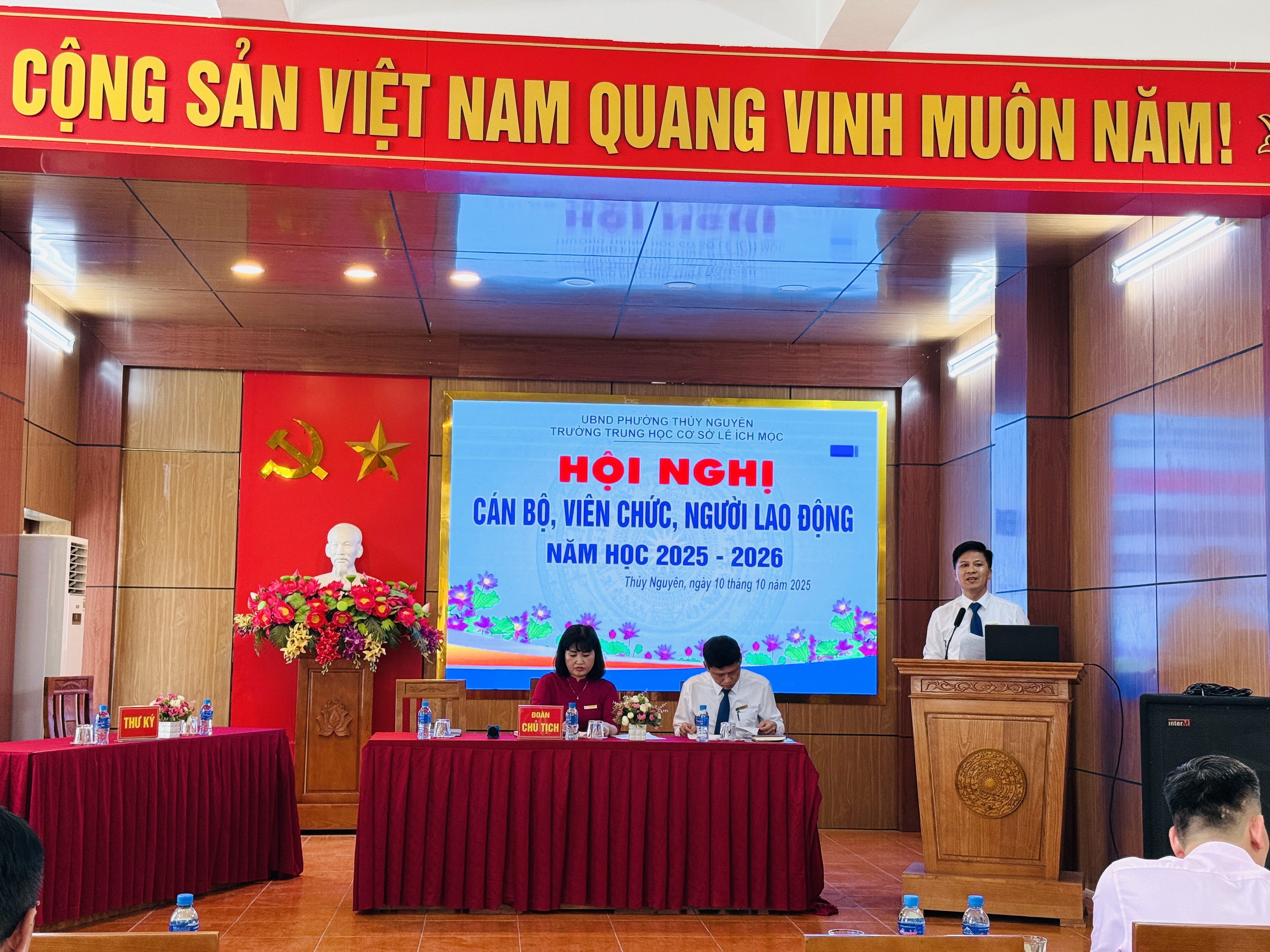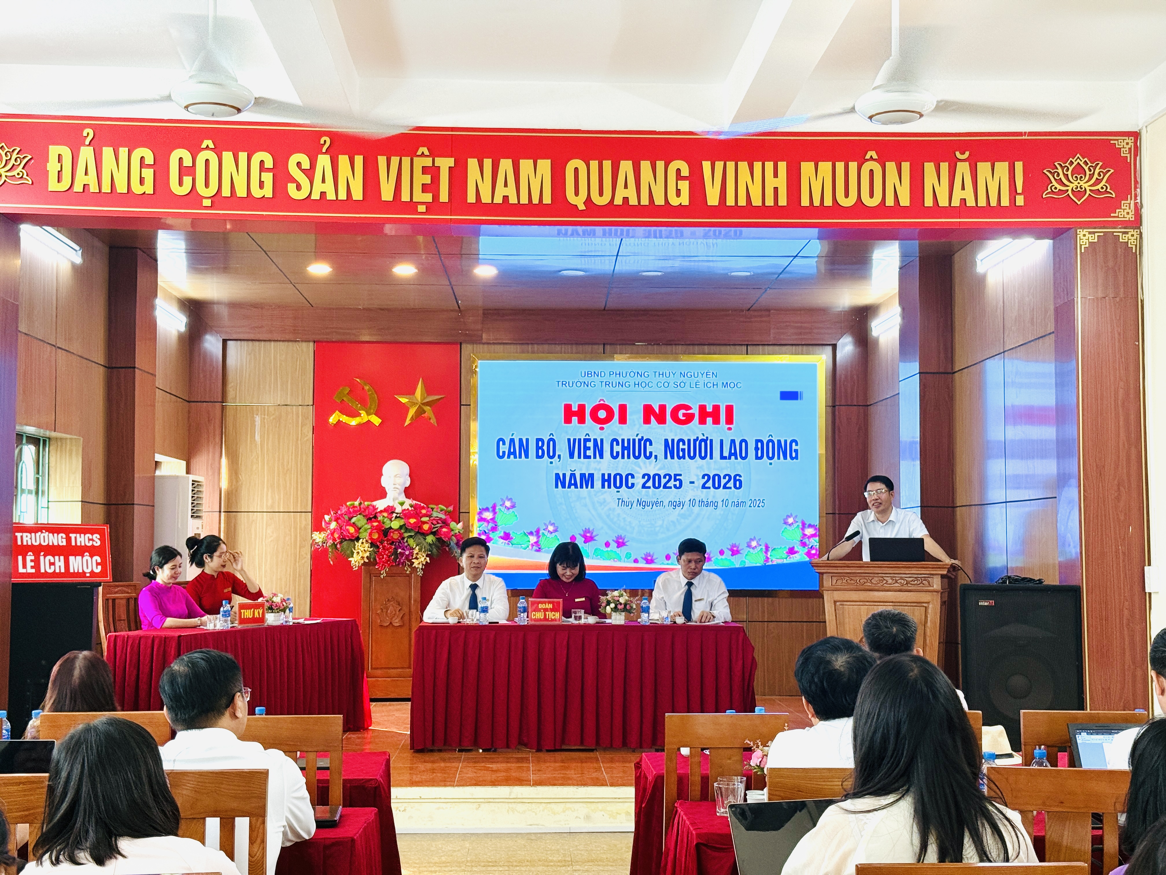 Ngày 10 tháng 10 năm 2025, Trường THCS Lê Ích Mộc long trọng tổ chức Hội nghị cán bộ, viên chức, người lao động năm học 2025–2026. Đây là hoạt động thường niên có ý nghĩa quan trọng, nhằm đánh giá kết quả thực hiện nhiệm vụ năm học 2024–2025, đồng thời thảo luận, đề ra phương hướng, mục tiêu và giải pháp thực hiện nhiệm vụ năm học mới.