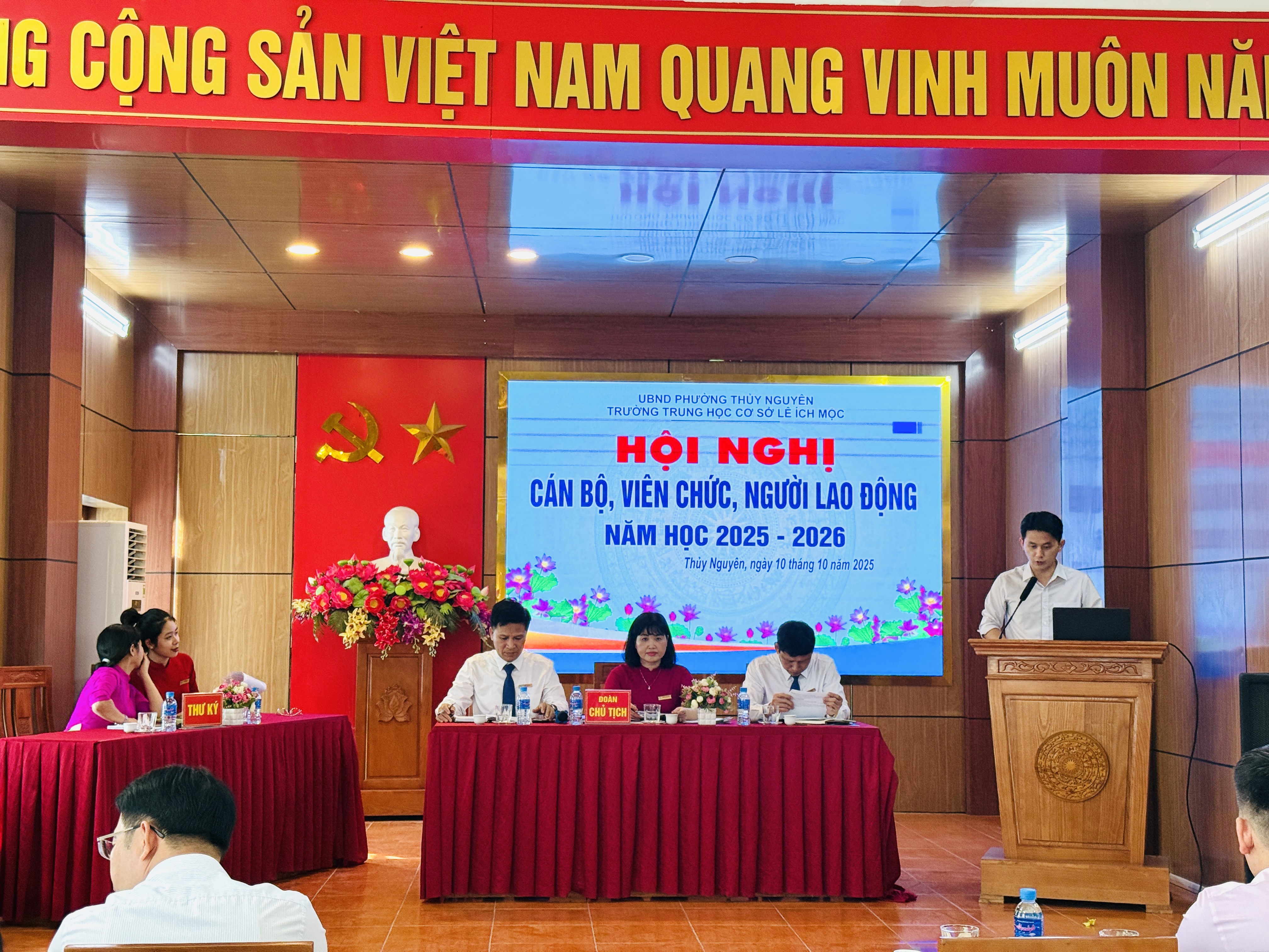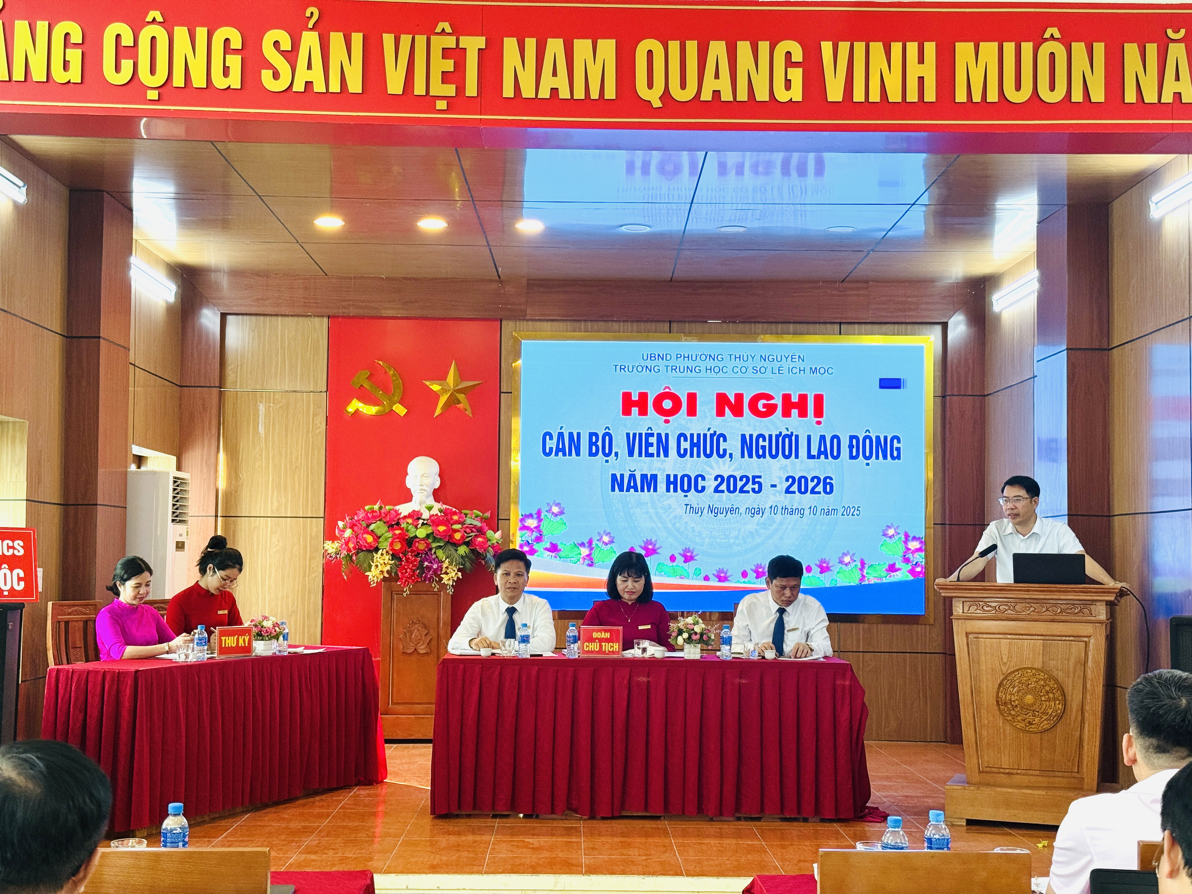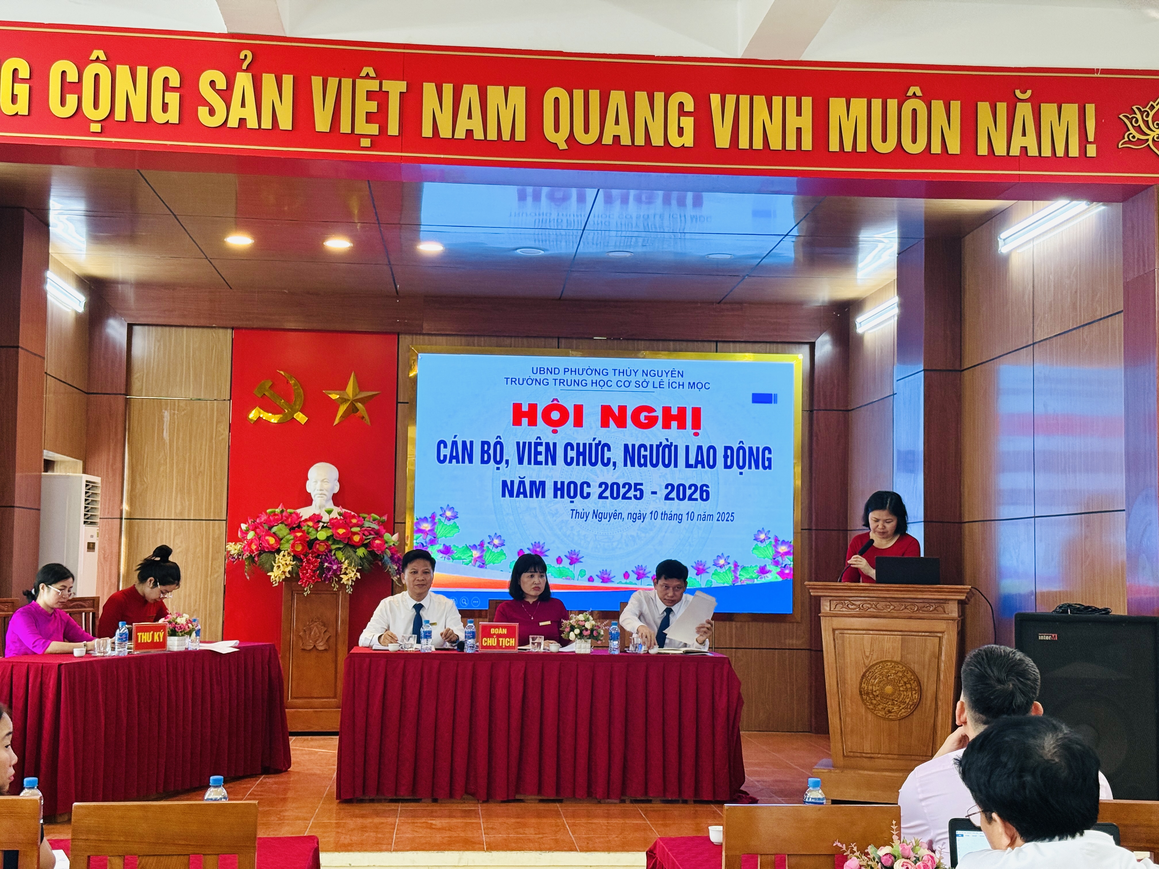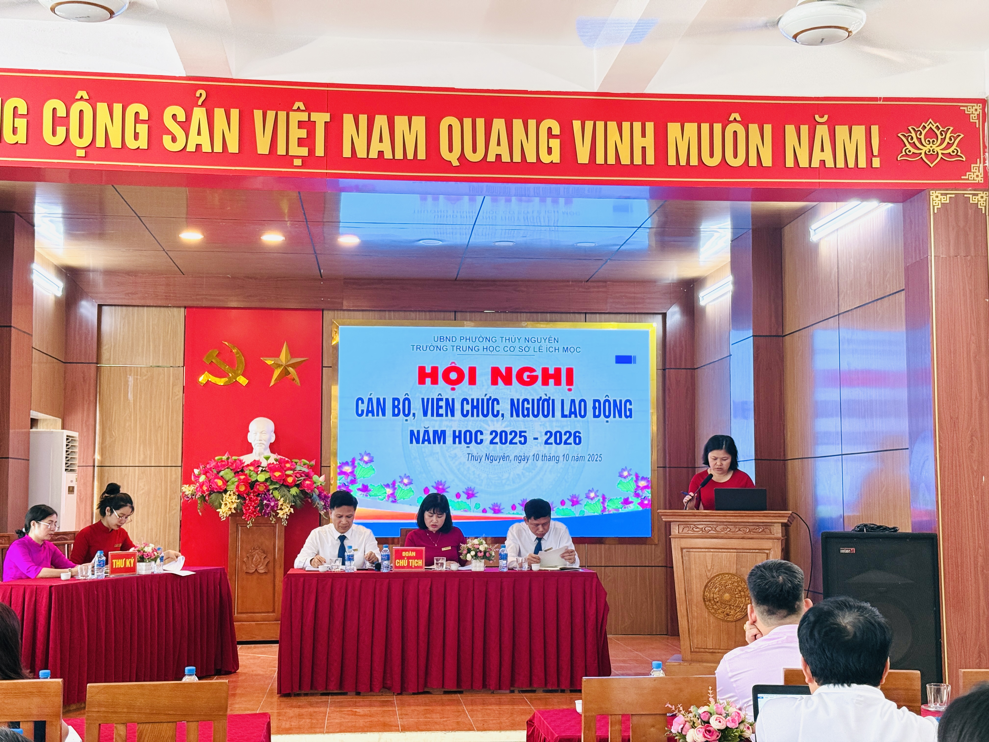 Ngày 10 tháng 10 năm 2025, Trường THCS Lê Ích Mộc long trọng tổ chức Hội nghị cán bộ, viên chức, người lao động năm học 2025–2026. Đây là hoạt động thường niên có ý nghĩa quan trọng, nhằm đánh giá kết quả thực hiện nhiệm vụ năm học 2024–2025, đồng thời thảo luận, đề ra phương hướng, mục tiêu và giải pháp thực hiện nhiệm vụ năm học mới.
