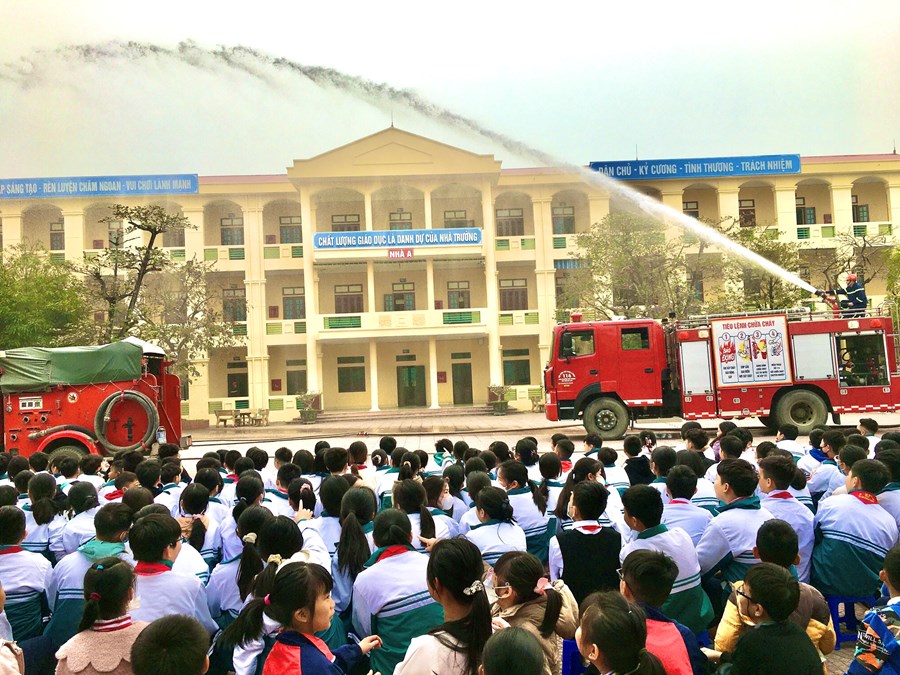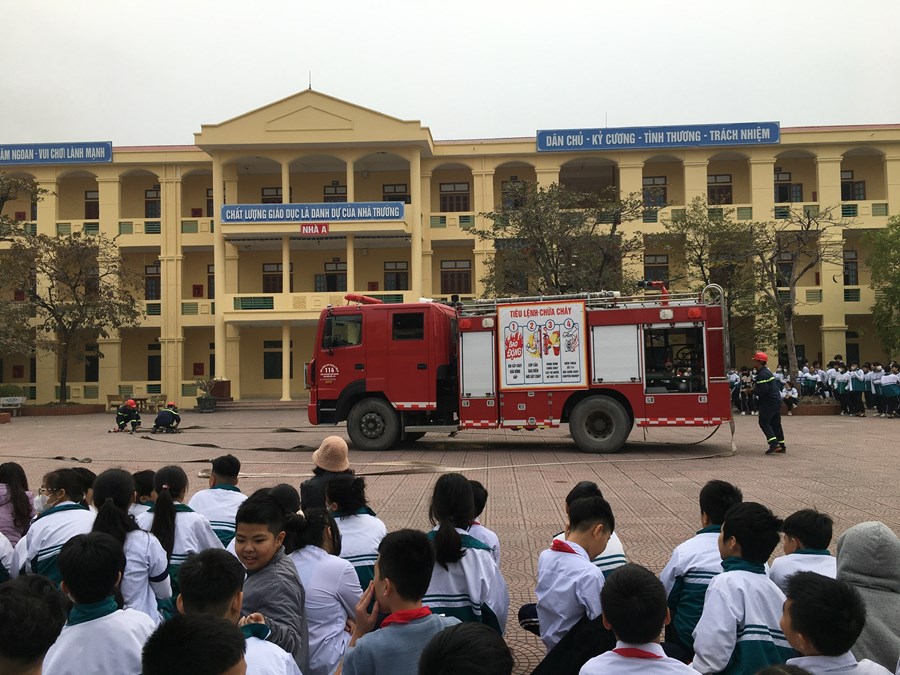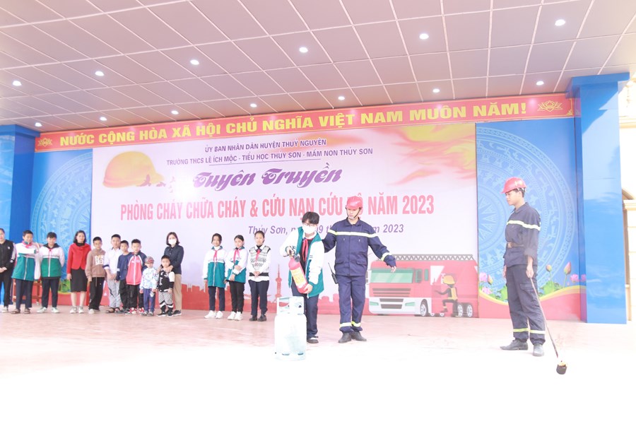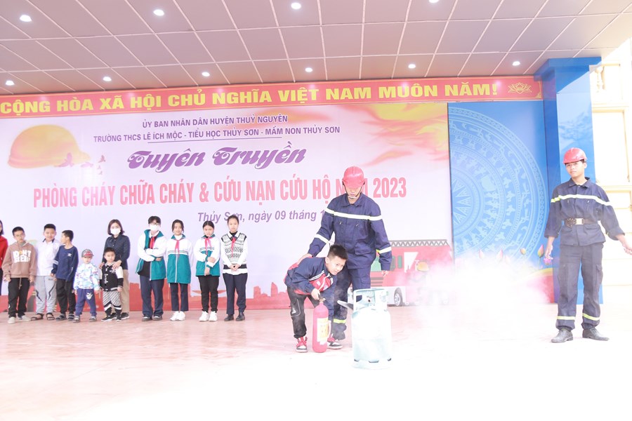 Tại buổi tuyên truyền đồng chí Đào Trọng Việt- cán bộ cảnh sát PCCC, CNCH – CA huyện Thủy Nguyên- Báo cáo viên đã truyền đạt những kiến thức cơ bản về PCCC cách sử dụng các phương tiện chữa cháy tại chỗ. Sau đó thầy trò 3 trường đã được thực hành cách sử dụng các phương tiện bình bột, bình CO2 để dập tắt đám cháy giả định và cách thức xử lý nhanh các tình huống có thể xảy ra.