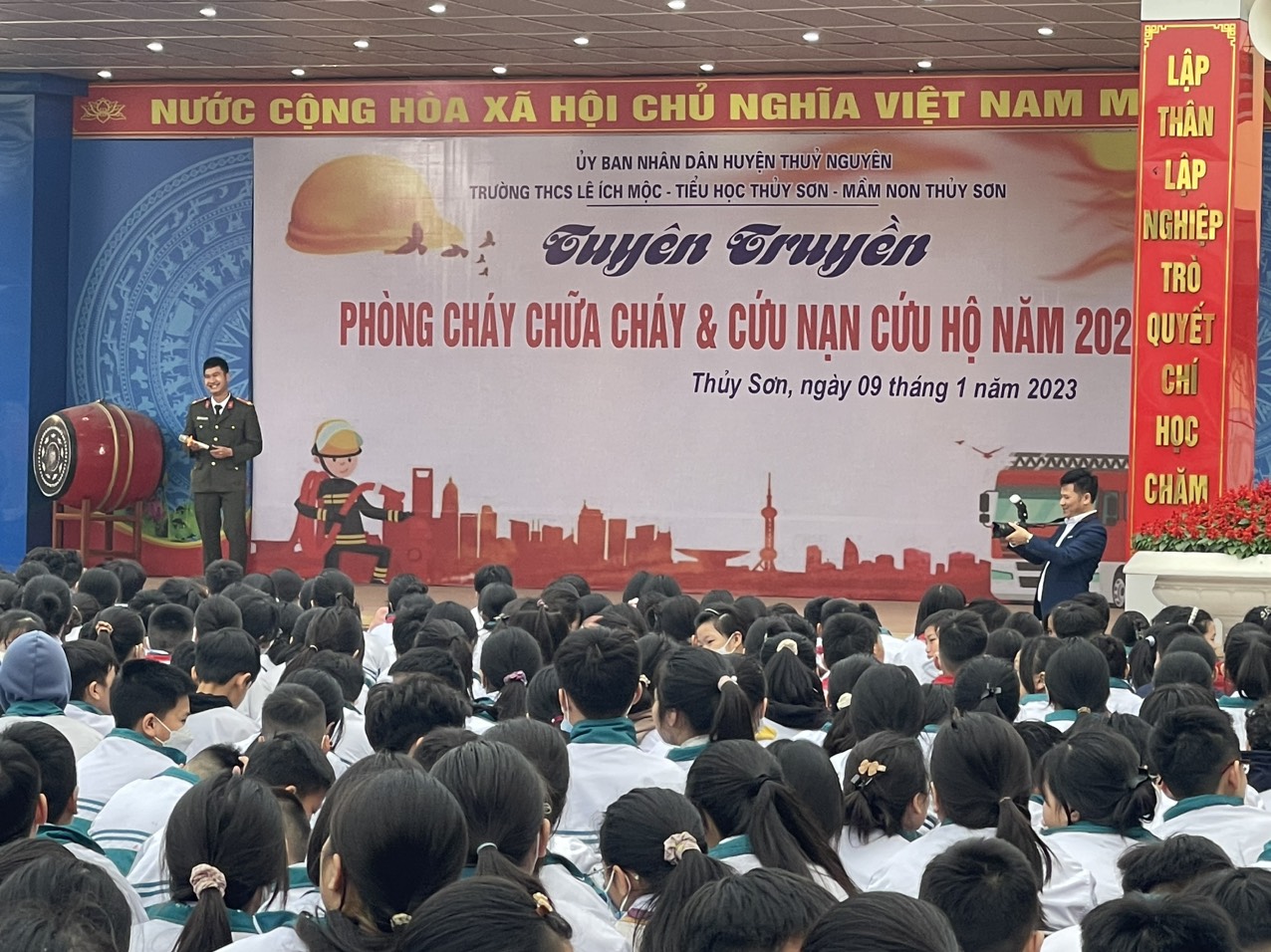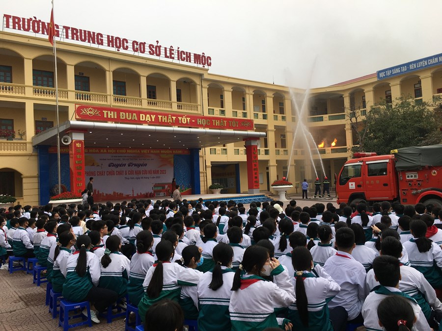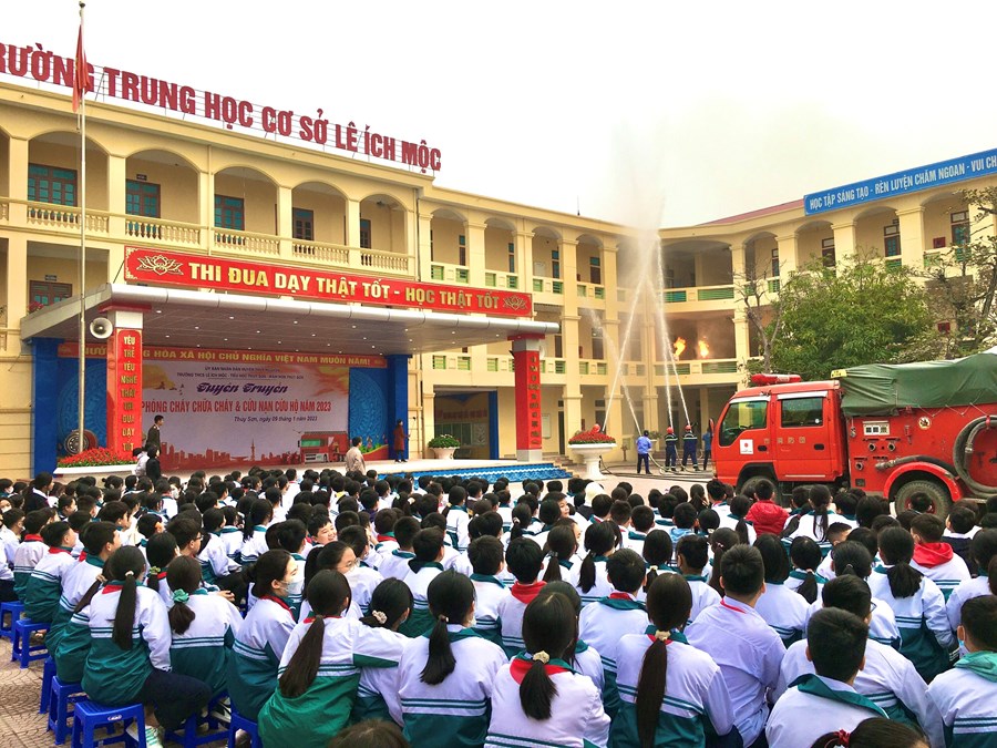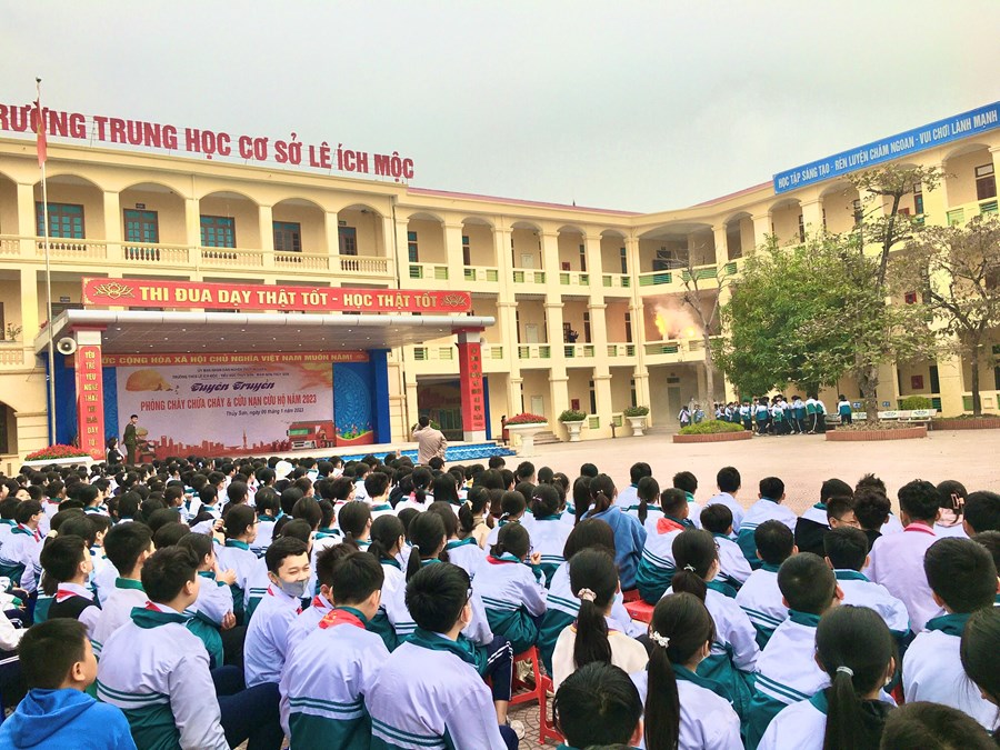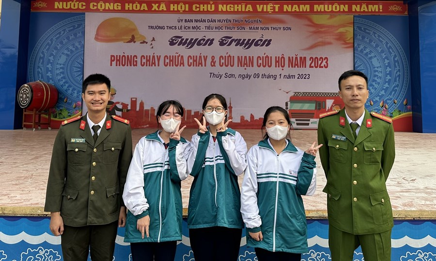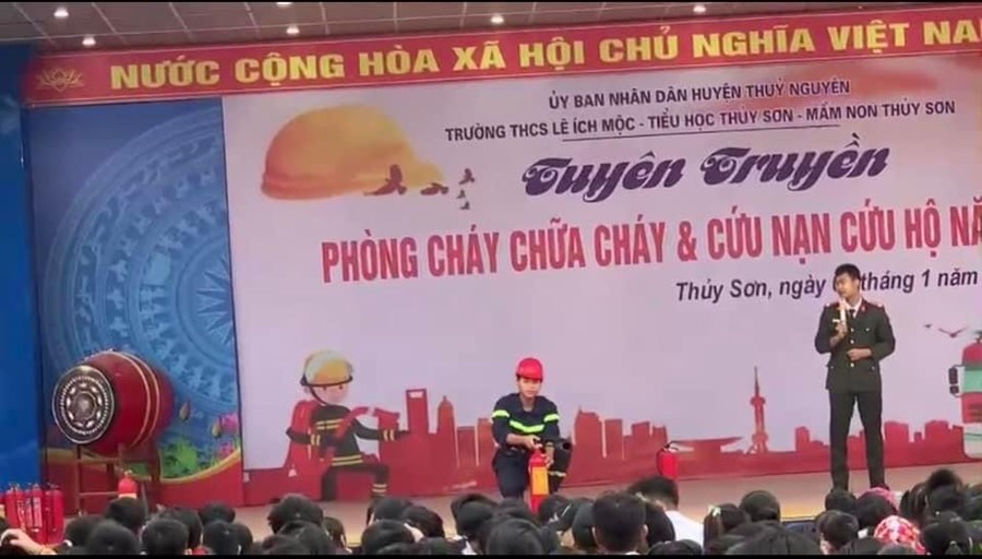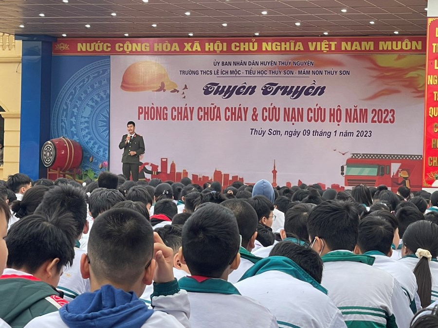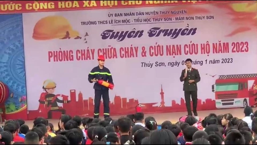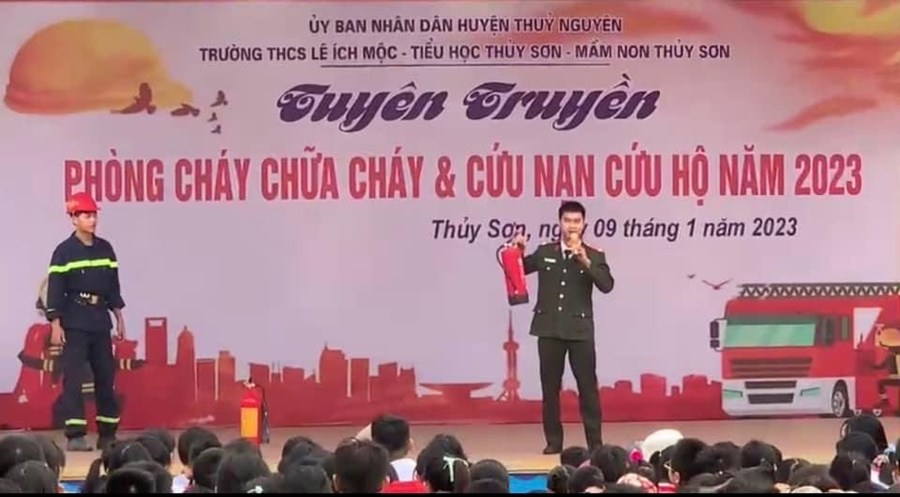 Nhằm thực hiện tốt công tác phòng cháy, chữa cháy trong trường học và nâng cao nhận thức, vai trò, trách nhiệm về công tác PCCC, CNCH cho mỗi cán bộ, giáo viên và HS, sáng ngày 9/1/2023, thầy trò ba trường: mầm non Thủy Sơn, tiểu học Thủy Sơn, THCS Lê Ích Mộc phối hợp với Phòng Cảnh sát PCCC, CNCH huyện Thủy Nguyên tổ chức buổi “ Tuyên truyền về PCCC và CNCH năm 2023”.