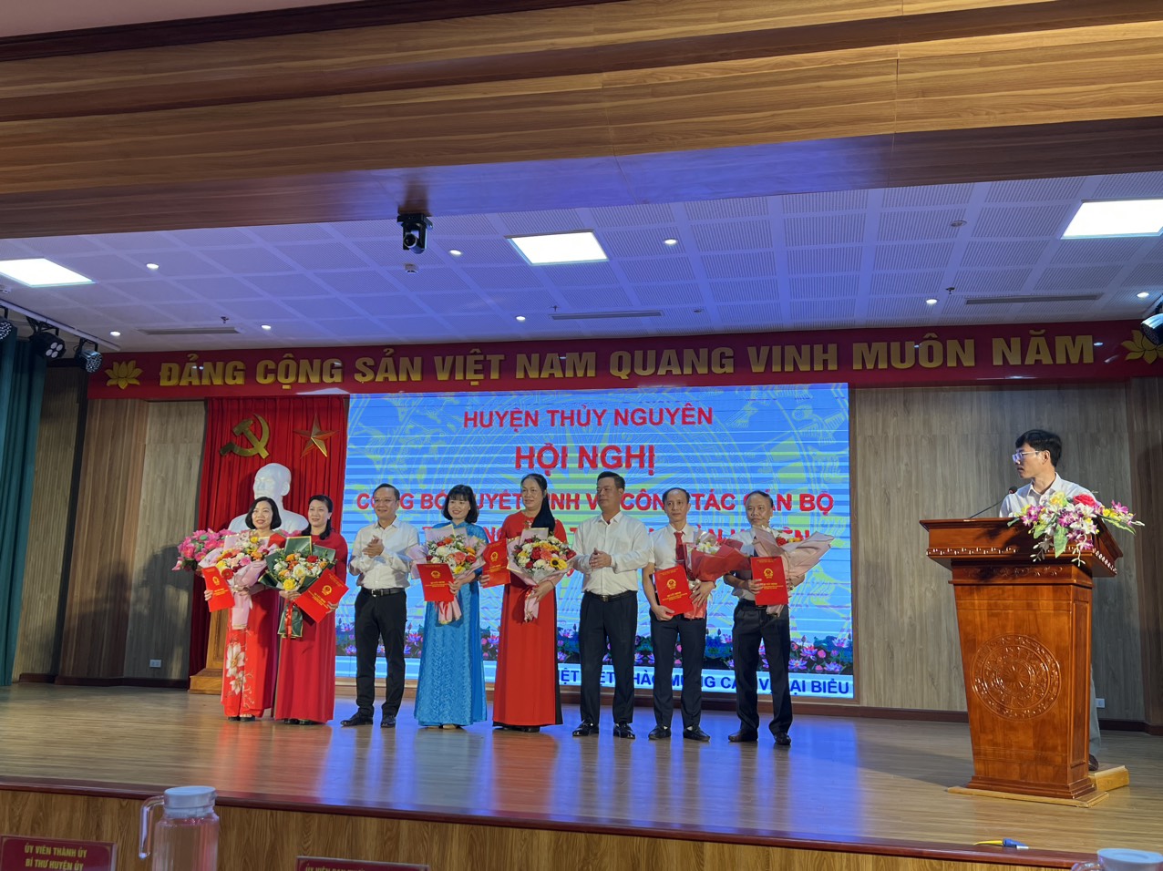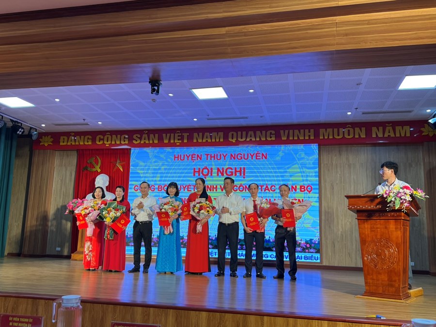 Sáng ngày 15/8/2023 UBND Huyện Thuỷ Nguyên tổ chức Hội nghị công bố các quyết định về công tác cán bộ, điều động bổ nhiệm viên chức quản lý tại các trường THCS, Tiểu Học, Mầm non trên địa bàn.