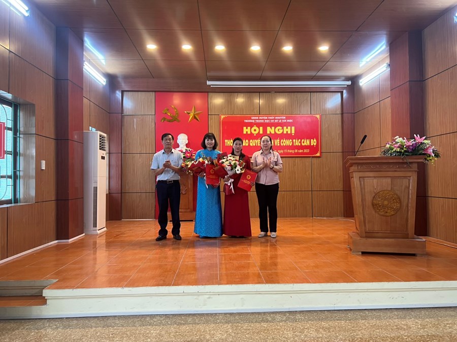 Theo đó, đồng chí Võ Thị Hiền – Hiệu trưởng trường THCS Lê Ích Mộc được chuyển về làm Hiệu trưởng trường THCS An Lư; đồng chí Phạm Thị Kim Chung – Hiệu trưởng trường THCS An Lư được chuyển về làm Hiệu trưởng trường THCS Lê Ích Mộc.